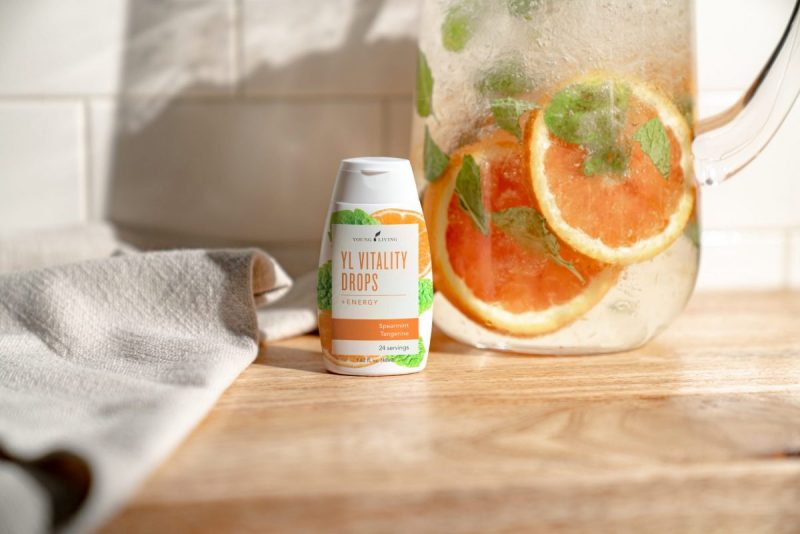 1 chorrito de Spearmint Tangerine Vitality Drops +Energy