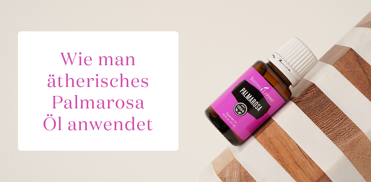 Eine unserer liebsten Arten ätherisches Palmarosa Öl zu nutzen ist, einige Tropfen in Deine tägliche Gesichtsessenz, das Serum oder die Feuchtigkeitscreme zu geben, um gesund aussehende Haut zu unterstützen. Wenn Du auch die Vorteile des entspannenden Aromas genießen möchtest, probiere einmal aus, Palmarosa mit Ylang Ylang und Bergamotte zu mischen und das Ganze mit Young Living V-6® Enhanced Vegetable Oil Complex zu verdünnen. Diese Mischung kann für ein Spa-Erlebnis, das auch die Haut pflegt, in einer entspannenden Massage genutzt werden.
