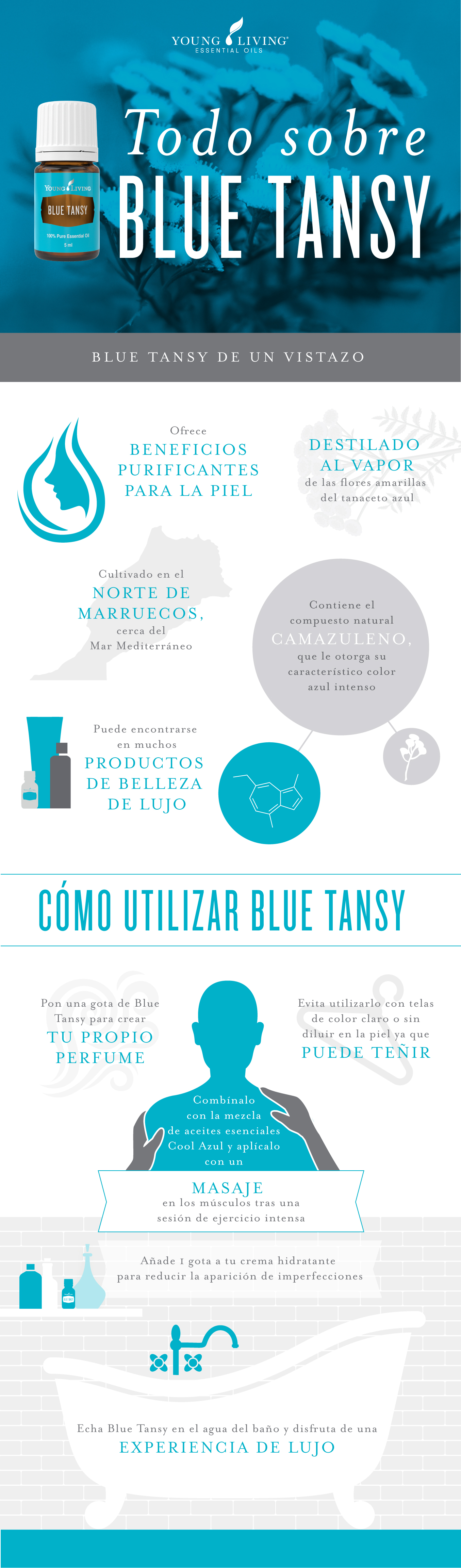 Mira esta infografía para descubrir más datos sobre este suntuoso aceite. Compártela con una amiga que quiera explorar los beneficios de Blue Tansy o guárdala como una guía útil.