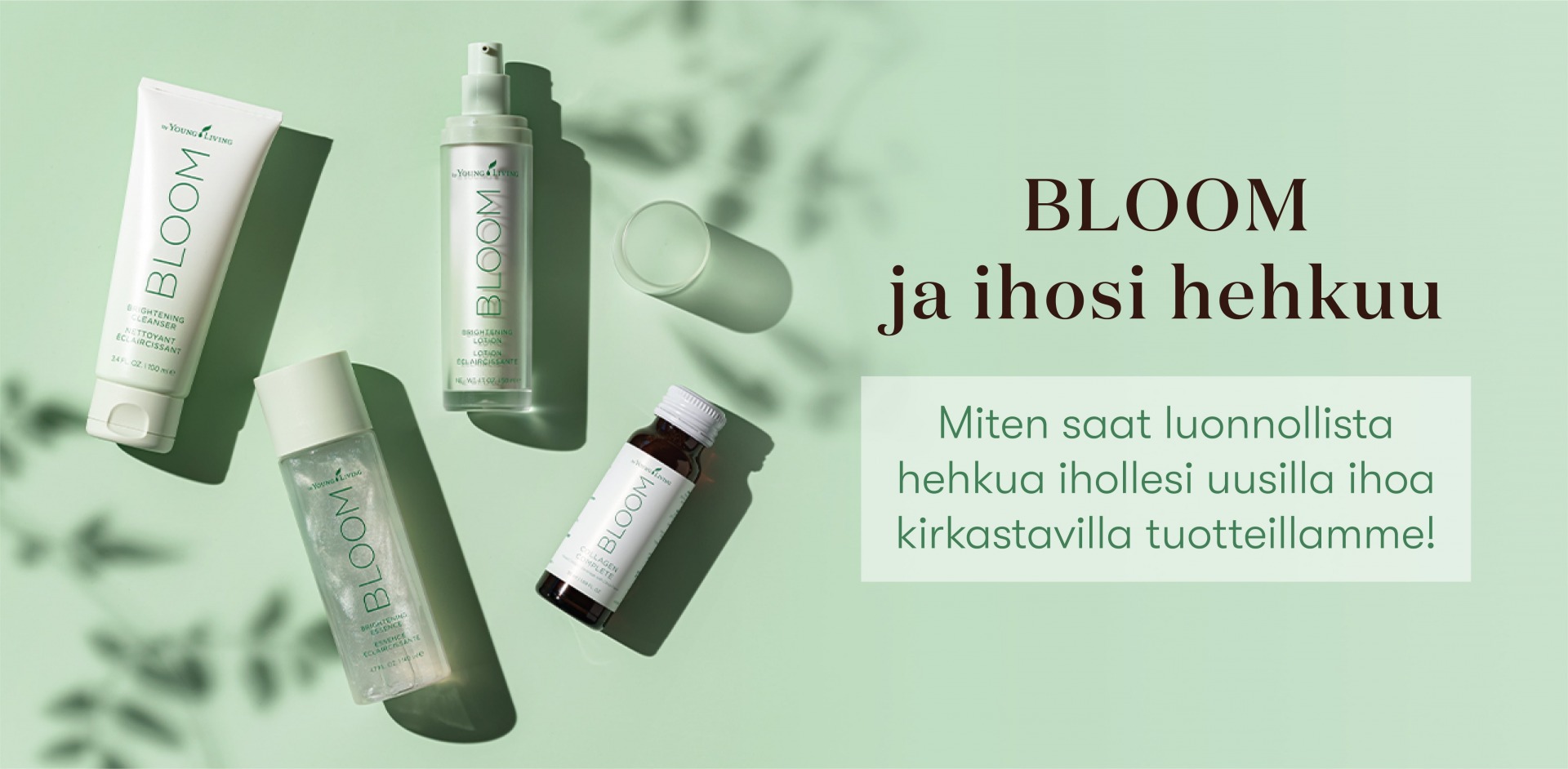 Terveellinen, kirkas ja kosteutettu iho on varma tapa kohentaa itseluottamusta. Me Young Livingillä välitämme jäsenistämme. Siksi haluamme antaa käyttöösi elämänlaatua kohentavia tuotteita. BLOOM by Young Living -tuotesarja on juuri tällainen. Tämän tuotesarjan hellät ja innovatiiviset tuotteet sisältävät mm. Sheerlumé Brightening Complexia, ja sarjan tuotteet nostavat ihonhoitosi uudelle tasolle.