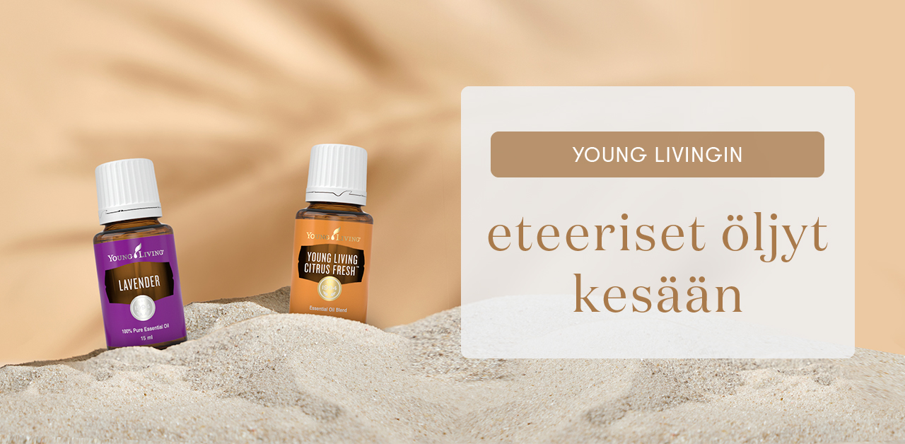 Yksi Young Livingin eteeristen öljyjen parhaita puolia on niiden monipuolisuus. Näistä upeista öljyistä on toki vaikea valita, mutta meillä on silti omat suosikkimme, mitä tulee eteerisiin öljyihin kesällä. Rakastamme kesäisin erityisesti romanttisia kukkaisöljyjä, kuten laventeliöljyä (Lavender), palsamiplargoniöljyä (Geranium) ja tuoksuilangiaöljyä (Ylang Ylang). Emme myöskään saa tarpeeksemme piparminttuöjyn (Peppermint) ja viherminttuöljyn (Spearmint) kaltaisista öljyistä, jotka raikastavat oloa helteellä. Kesään sopivat erinomaisesti myös virkistävät sitrusöljyt. Tällaisia ovat sitruunaöljy (Lemon), appelsiiniöljy (Orange), tangeriiniöljy (Tangerine) ja Young Living Citrus Fresh®. Näitä sitrusöljyjä voidaan käyttää muun muassa henkilökohtaisina tuoksuina tai iltaisin ihonhoidossa. Sitrusöljyt ovat kuitenkin fotosensitiivisiä, joten suosittelemme varovaisuutta, jos käytät näitä öljyjä paikallisesti.