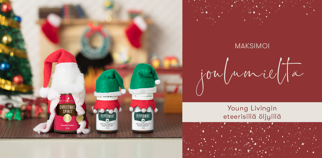Joulu on saapunut ja me täällä Young Livingillä olemme jouluhurmion vallassa. Tapaamme juhlia joulua ympäröimällä itsemme eteeristen öljyjen tuoksuilla. Joulun aikaan sopivat upeasti ylellinen Frankincense, tehokas Cinnamon Bark ja maaginen Christmas Spirit. Etsit sitten täydellistä öljyä seuraksesi, kun koristelet taloa joulukuntoon, leivot pipareita tai istuudut jouluillalliselle, kerromme tässä blogissa, miten voit tehdä kodistasi juhlalliselta tuoksuvan joulumaan.