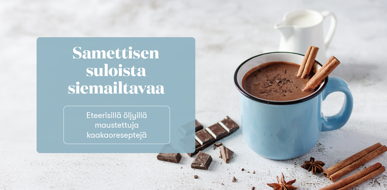 Kukapa voisi talvella vastustaa mukillista höyryävän kuumaa kaakaota? Voit tehdä tästä klassikkojuomasta vieläkin herkullisemman lisäämällä siihen eteeristen öljyjen ihastuttavia aromeja. Tule mukaan herkulliselle makumatkalle, kun tutustumme kaakaoresepteihin, joissa yhdistyvät kaakaon rikas, samettinen maku ja aromaattiset Plus-öljymme