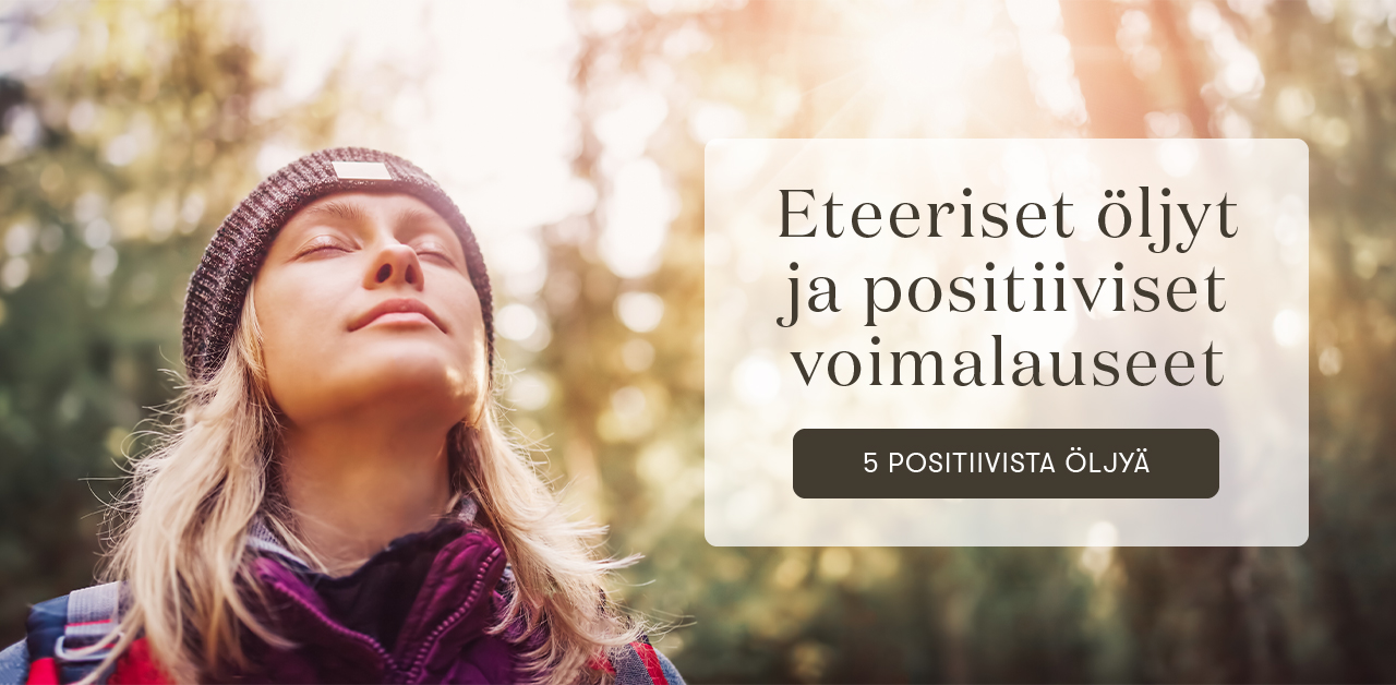 Tiedetään, että tuoksut, tunteet ja muisti liittyvät läheisesti toisiinsa. Kun yhdistät eteeristen öljyjen ainutlaatuiset tuoksut positiivisiin voimalauseisiin, positiiviset ajatukset vahvistuvat hengittäessäsi näiden eteeristen öljyjen tuoksuja. Joka kerta kun kokeilet positiivisia voimalauseita, valitse sen yhteyteen eteerinen öljy tai öljysekoitus. Kun lausut ääneen positiivisia voimalauseita, levitä eteeristä öljyä paikallisesti iholle tai hengitä öljyn tuoksua suoraan pullosta. Anna kauniiden tuoksujen inspiroida ja motivoida sinua saavuttamaan tavoitteesi.