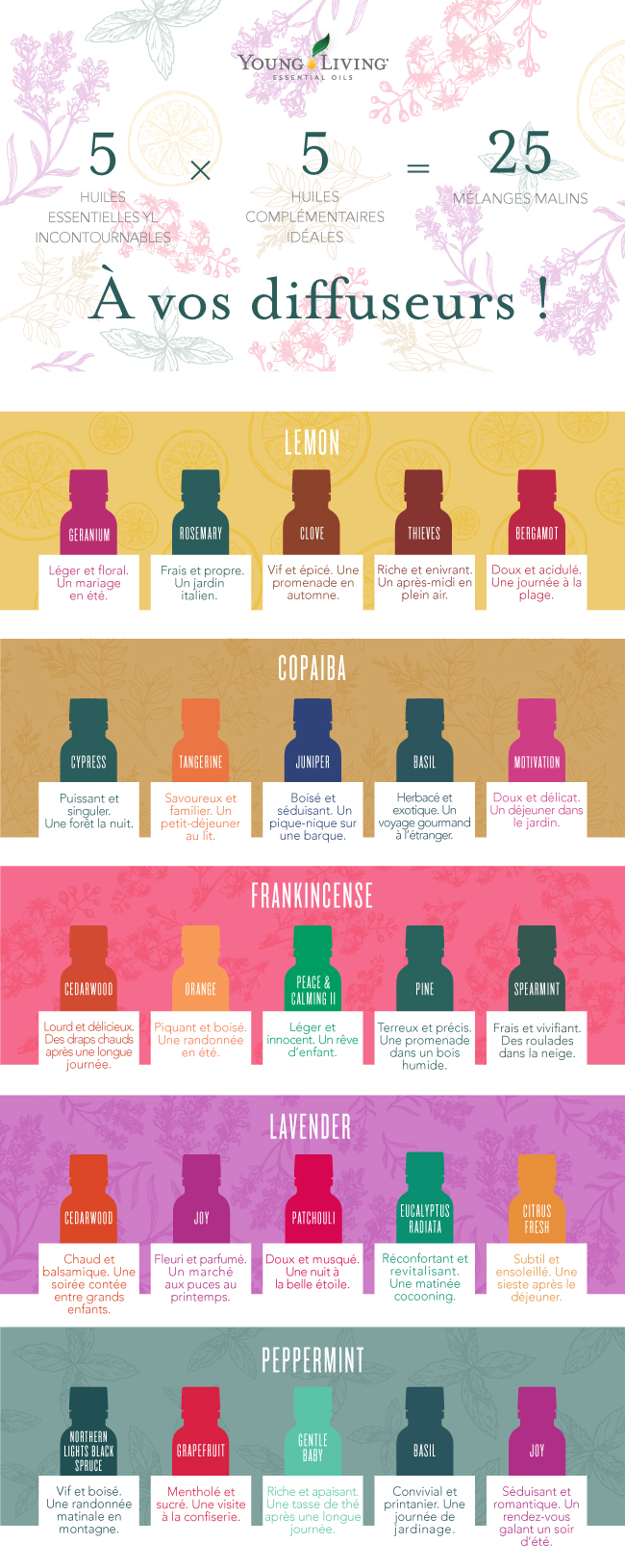 Nous savons que nos lecteurs aiment combiner leurs huiles préférées et créer des mélanges aromatiques personnels. Vous connaissez sûrement les classiques : Cinnamon Bark &, Lavender &  Peppermint, Lemon & Lime… Mais à présent, nous allons nous aventurer un peu plus loin et créer des assemblages frais, fruités, floraux, et uniques !
