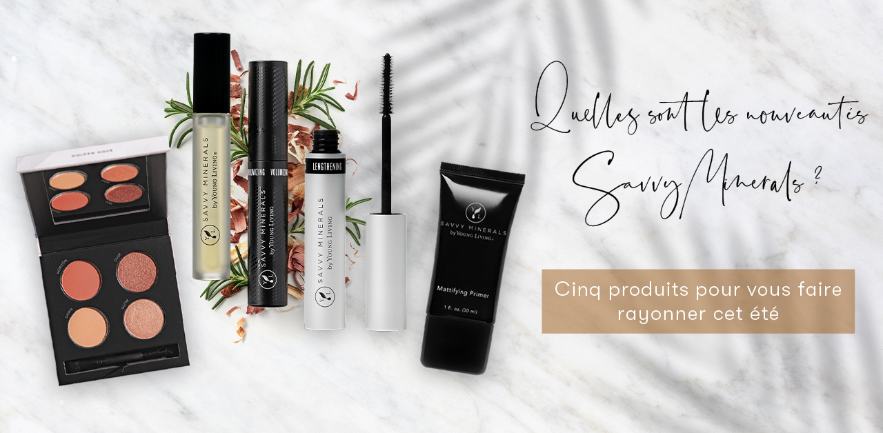 Les beaux jours approchent et nous avons hâte de mettre ces jolies robes, de nous faire belle et de laisser notre éclat naturel briller cet été avec la collection Savvy Minerals by Young Living®.Nos produits de la gamme Savvy Minerals sont obtenus de manière responsable. Ils ne contiennent pas de parabènes ni de phtalates mais plein d’ingrédients aux huiles essentielles. Ces produits vous permettent de créer des maquillages époustouflants qui conviennent à toutes les occasions. Et grâce aux produits que nous avons lancés ces derniers mois, vous trouverez tout ce dont vous avez besoin dans notre superbe gamme Savvy. Les mois à venir vous donneront l’occasion d’essayer des maquillages décontractés, lumineux, aux tons chauds, or et brillants sous le soleil d’été. Alors, qu’attendez-vous ? Dans cet article, nous vous présentons les bienfaits de nos nouveaux produits Savvy Minerals afin que vous restiez resplendissante jusqu’à l’automne !