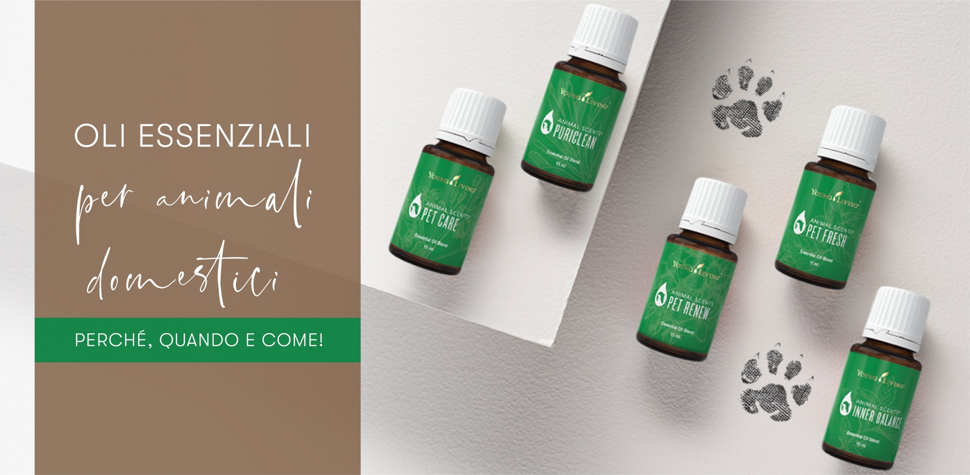 A Young Living ci prendiamo cura delle nostre famiglie e consideriamo i nostri animali domestici una parte fondamentale della nostra famiglia. Sappiamo che ai nostri membri piace condividere gli oli con le persone che amano e quindi ha senso che amino condividere gli oli con i loro animali domestici. Ecco perché abbiamo ideato la nostra fantastica linea di prodotti Animal Scents®  che possono essere usati per portare nuovi aromi e sensazioni ai nostri amichetti pelosi. Per scoprire di più su come meglio usare questi prodotti e altri oli essenziali, garantendo la sicurezza e la felicità dei nostri amici a quattro zampe!