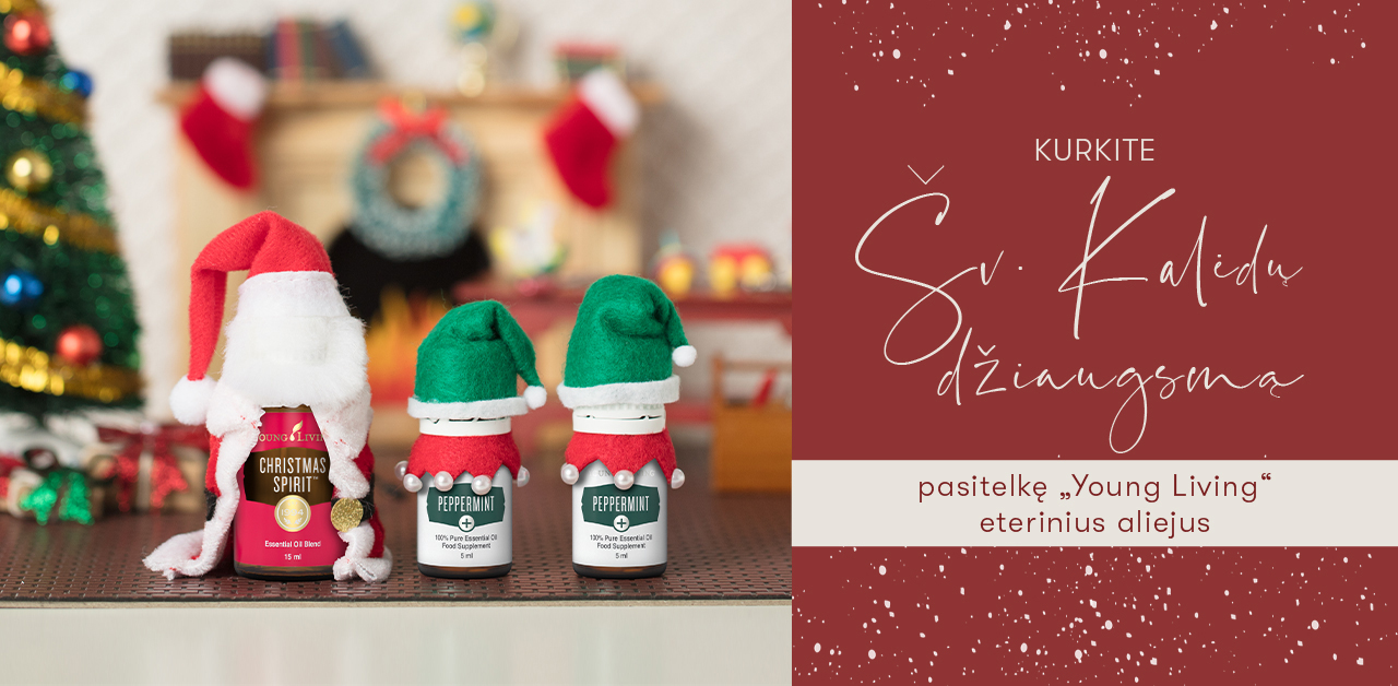 Šv. Kalėdos – jau visai čia pat. „Young Living“ jau mėgaujasi šventine nuotaika. Vienas iš būdų, kuriais mėgstame švęsti šį metų laiką, yra naudojant eterinius aliejus, kad sezono kvapai pabudintų mumyse kalėdinę nuotaiką. Nuo prabangaus „Frankincense“ aliejaus iki nepamainomo „Cinnamon Bark“ aliejaus… bei magiškojo aliejų mišinio „Christmas Spirit“… „Young Living“ siūlo šventinių aromatų gausybę. Nesvarbu, ar ieškote tobulo aliejaus, kurį garinsite puošdami namus, įtrauksite į receptus ruošdami skanius šventinius patiekalus, o gal ketinate kurti ypatingą aromatinę nuotaiką per šventes… šiame tinklaraščio įraše gausu patarimų, kaip savo namus paversti žiemos stebuklų šalimi. Ar esate pasiruošę?