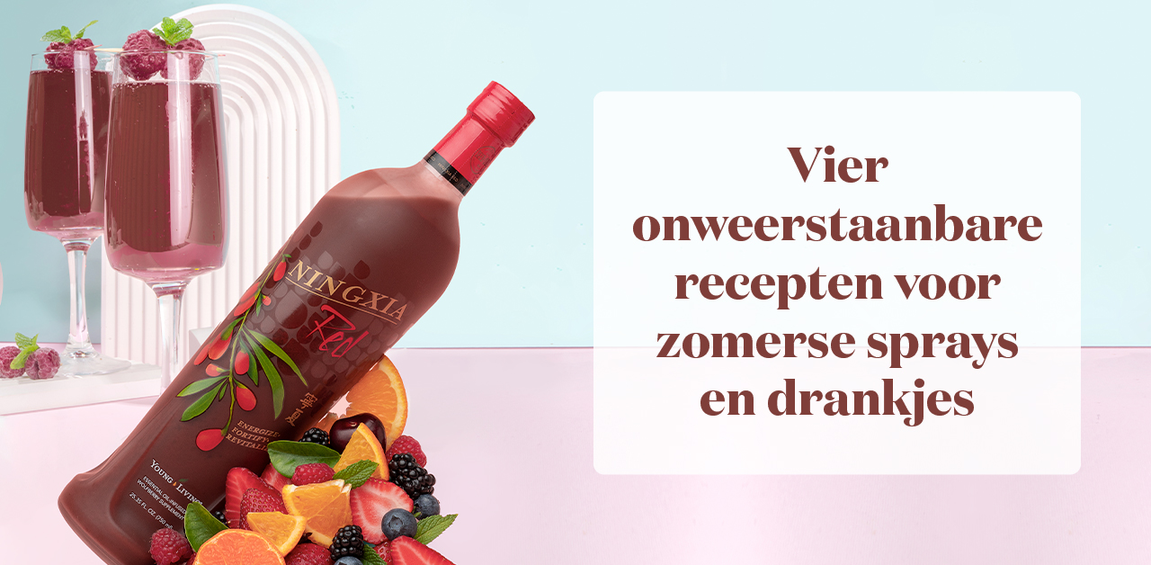 Maak kennis met NingXia Red® Spritz: een levendige mocktail die al het goede van NingXia Red®, bessen en mineraalwater bevat. Of je nu een gezellig tuinfeest organiseert of simpelweg ontspant in de zon, met dit lekkere en verfrissende drankje voeg je een vleugje vreugde toe aan jouw zomermomenten.