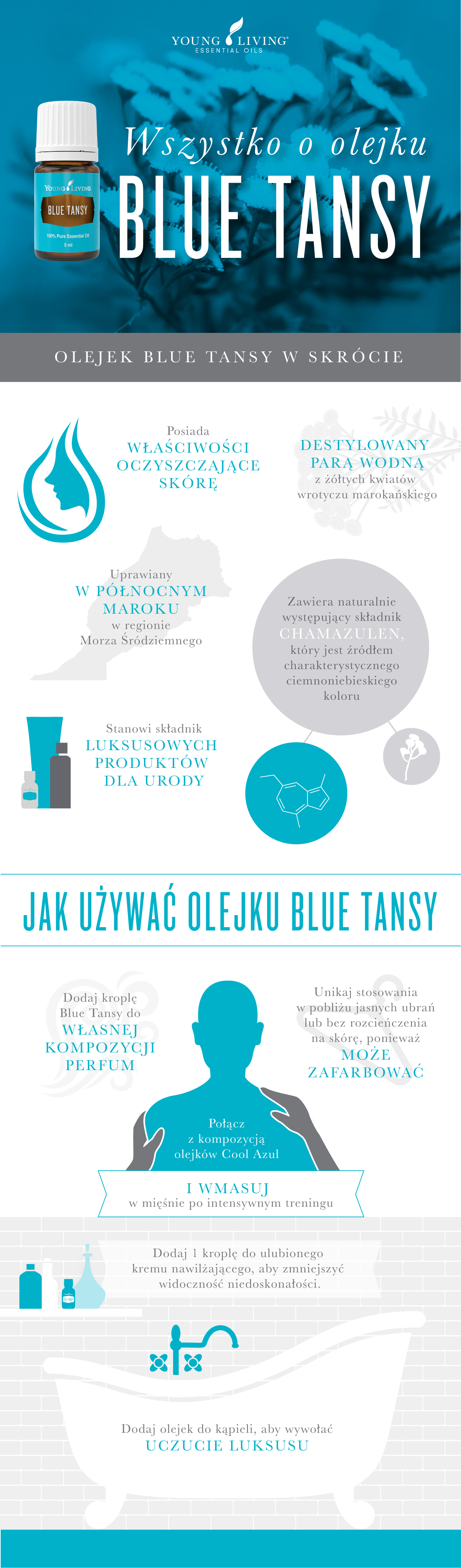 Zobacz naszą infografikę, aby poznać więcej ciekawostek o tym drogocennym olejku. Możesz się nią również podzielić ze znajomym, który pragnie odkryć zalety Blue Tansy lub mieć ją zawsze pod ręką jako przydatny przewodnik!