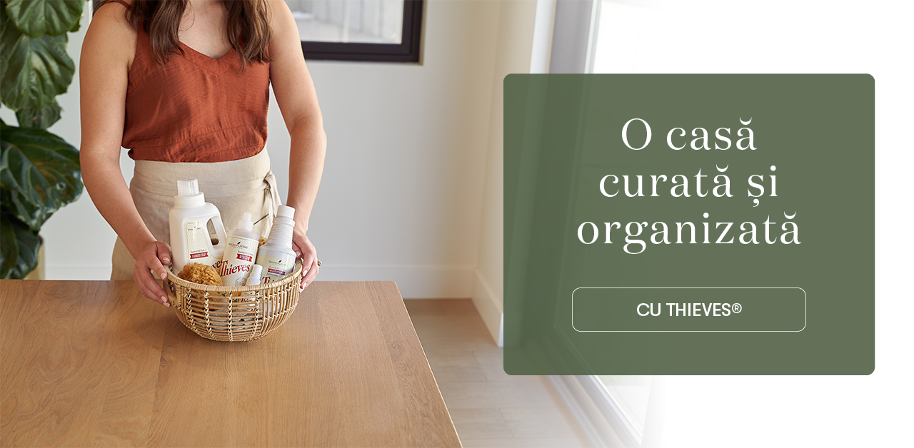 Curățenia de primăvară și organizarea pot fi o sarcină dificilă, dar rezultatele sunt întotdeauna pe măsură! Alocând timpul necesar pentru a face ordine și a-ți curăța căminul în profunzime poți crea un rai sigur în care dăinuie relaxarea, productivitatea și stare generală de bine. Alegând produse de curățare formulate cu ingrediente derivat în mod natural, precum cele din gama Thieves®, îți menții căminul curat, proaspăt și fără substanțe chimice dure. Așa că, după ce ai terminat curățenia, ia o pauză și relaxează-te în spațiul tocmai reorganizat. Bucură-te de mirosul proaspăt al lui Thieves și savurează sentimentul de împlinire.