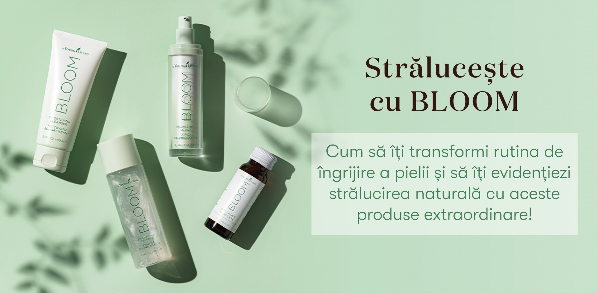 Un mod garantat de a-ți stimula stima de sine și de a-ți maximiza încrederea în tine este să ai o piele fericită, sănătoasă, senină și hrănită. Permite sinelui tău interior să strălucească și adu o doză de pozitivitate în rutina ta zilnică! Nouă, celor de la Young Living, ne pasă mult de membrii noștri și de impactul pe care îl au produsele noastre asupra vieților lor. De aceea, suntem foarte entuziasmați să lansăm noua noastră gamă incredibilă de îngrijire a pielii, BLOOM, de la Young Living. Această gamă de produse delicate, inovatoare, oferă utilizatorilor săi oportunitatea de a-și îmbunătăți rutina de îngrijire a pielii în timp ce canalizează puterea complexului de strălucire Sheerlumé, pentru o piele strălucitoare și revitalizată.