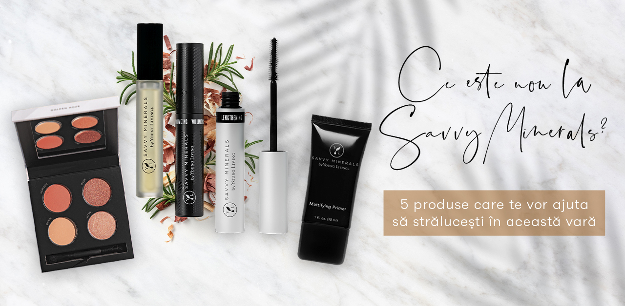 Pe măsură ce se apropie vremea caldă, suntem mai entuziasmați ca niciodată să ne îmbrăcăm frumos, să fim strălucitori și să ne lăsăm strălucirea naturală să se manifeste în această vară cu ajutorul colecției Savvy Minerals by Young Living®. Provenită din surse responsabile, fără parabeni și ftalați și plină de ingrediente infuzate cu uleiuri esențiale, gama noastră Savvy Minerals oferă tot ceea ce este necesar pentru a crea look-uri uimitoare care pot fi purtate cu orice ocazie și, datorită produselor fantastice pe care le-am lansat în ultimele luni, nu trebuie să cauți mai departe de Savvy în această vară pentru toate dorințele tale în materie de produse de înfrumusețare. Lunile următoare oferă momentul perfect pentru a experimenta cu aspecte relaxate, aspecte proaspete, tonuri calde, aurii și piele strălucitoare sub cerul îmbibat de soare, așa că ce mai aștepți? Prin intermediul acestui blog, îți vom prezenta beneficiile celor mai noi oferte Savvy Minerals, astfel încât să fii sigură că vei fi strălucitoare până la toamnă!
