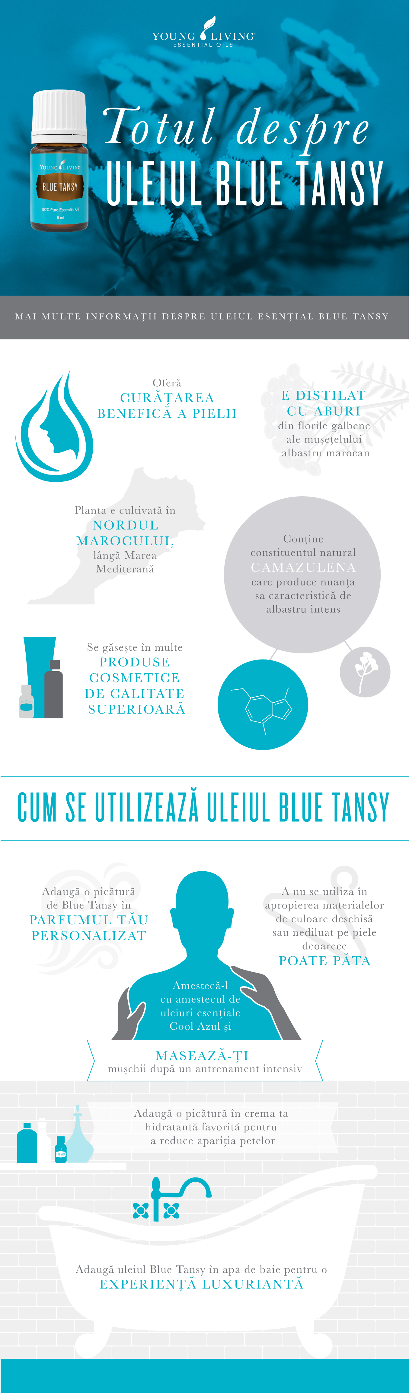Citește acest infografic pentru mai multe informații interesante despre acest ulei luxuriant. Trimite-l prietenei tale care dorește să afle mai multe despre beneficiile uleiului Blue Tansy sau utilizează-l ca ghid util pentru tine însăți!
