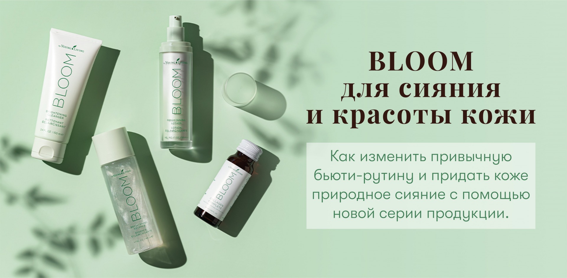 Здоровая, сияющая, ухоженная кожа повышает самооценку и дарит уверенность в себе, излучая внутреннее сияние и сохраняя отличное настроение на протяжении всего дня. Для нас очень важно, чтобы каждый участник получал удовольствие от продукции Young Living, именно поэтому сегодня мы хотим поделиться с вами информацией о новой серии средств по уходу за кожей BLOOM от Young Living. Наш новый ассортимент инновационной продукции позволит вам улучшить повседневный уход за кожей. В ней содержится эффективный осветляющий комплекс Sheerlumé Brightening Complex, который придает коже сияние и помогает вам чувствовать себя полностью обновленными.