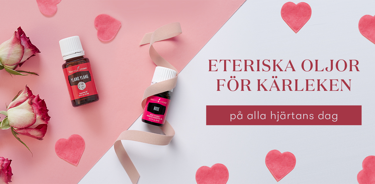 Glad alla hjärtans dag från oss alla på Young Living! Februari är kärlekens och omtänksamhetens månad, så vi kan inte komma på ett bättre sätt att fira än att berätta för er om några av våra mest romantiska oljor, blandningar och oljeberikade produkter. Oavsett om du vill skapa en härlig stämning med en sensuell blandning, hoppas skämma bort din älskling med en oljegåva eller helt enkelt planerar att prioritera att ta hand om dig själv nu i februari så har precis rätt dofter för dig. I det här blogginlägget kommer vi att svara på dina frågor om några av våra mest romantiska Young Living-produkter – som alla passar perfekt på alla hjärtans dag!