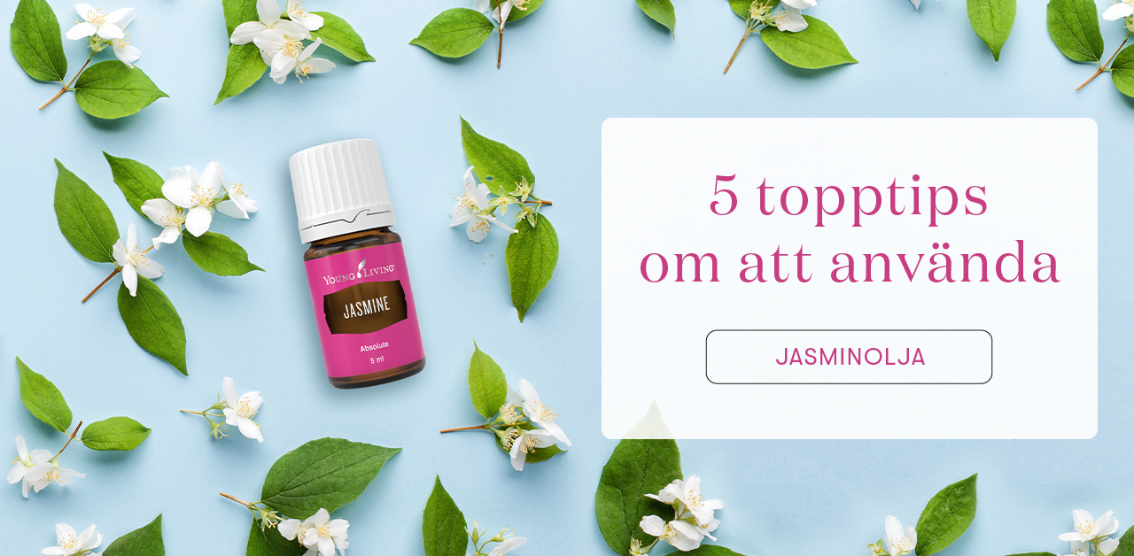 Jasminblommorna är vita och vackra med en söt och sensuell doft och de plockas i gryningen för att behålla sin starka doft. Vi på Young Living älskar blommiga oljor och den eteriska jasminoljan (Jasmine) har blivit en storfavorit tack vare sin fylliga doft, plus att den också har hudvårdande egenskaper och kan användas på många olika sätt. I det här blogginlägget kommer vi att berätta om fem topptips på hur man får ut så mycket som möjligt av oljan Jasmine, oavsett om du vill blanda den med andra oljor och skapa en underbar blandning eller hoppas kunna använda den i badet för att få en lugn och härlig stund. Vad väntar du på?