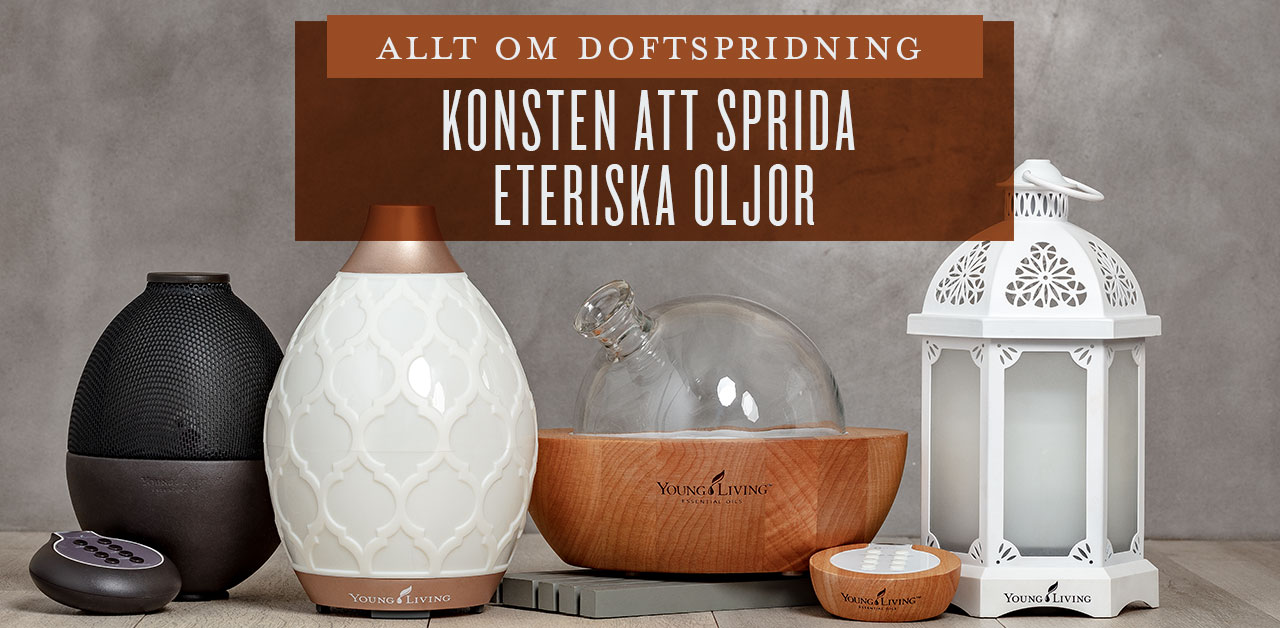 När man sprider eteriska oljor så sprids oljemolekyler i luften vilket är ett utmärkt sätt att få ut mesta möjliga av de eteriska oljornas välgörande egenskaper. Det finns många sätt att sprida eteriska oljor så vi tar och går igenom de vanligaste. Det är viktigt att poängtera att om man värmer upp eteriska oljor för mycket med aromalampor eller värmeljus så kan de bli mindre verksamma och därför fokuserar vi på doftspridarmetoder med kalluft.