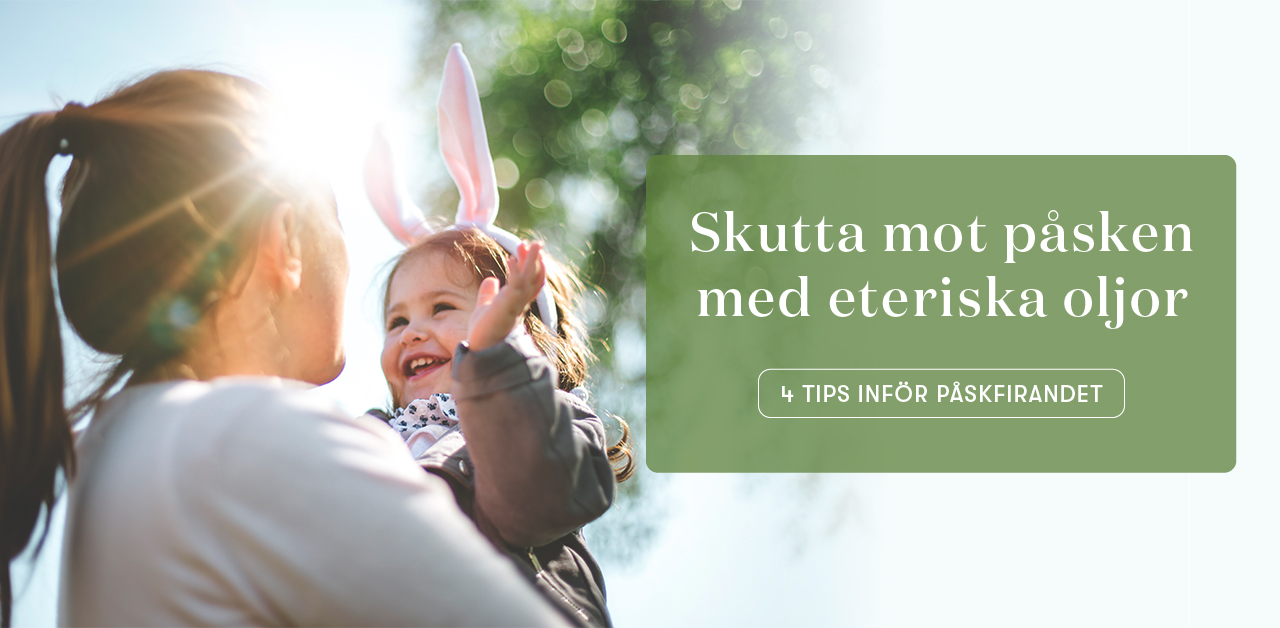 Föräldrar, vi har inte glömt er! Kom in i påskstämningen och gör en egen eterisk oljeblandning som du kan använda som parfym eller tillsätta i dina hudvårdsprodukter under påskhelgen. Här kan du läsa om några populära eteriska oljeblandningar som säkert får dig på påskhumör! Glöm inte att späda ut de eteriska oljorna när du använder dem utvärtes.