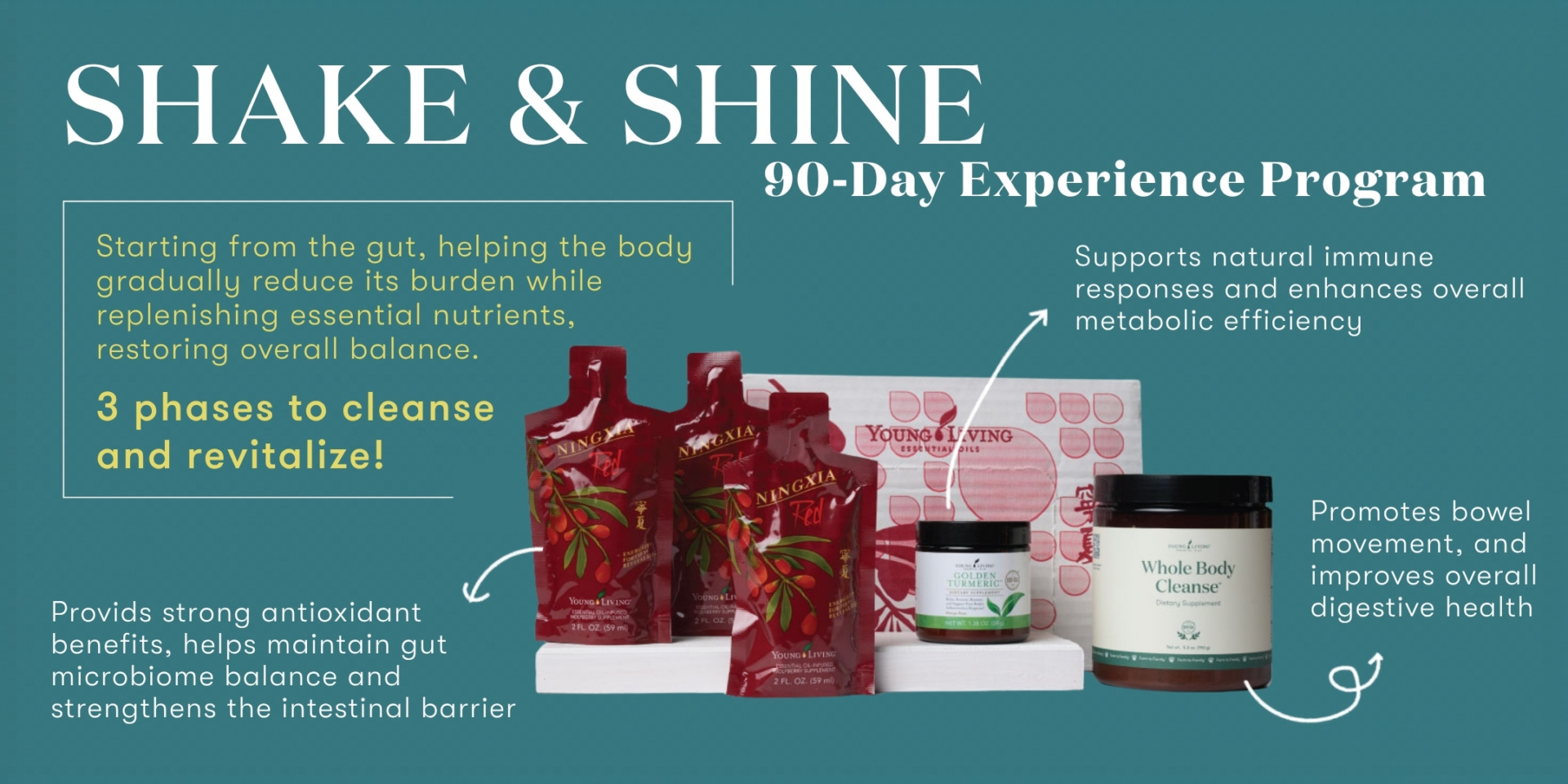 Gut care does not happen overnight. It takes time to build. YL invites you to join the Shake & Shine 90‑Day Experience Program and continue to experience the Shake & Shine Vitality Kit that includes Whole Body Cleanse, NingXia Red, and Golden Turmeric for 3 months to reset your body! Through this gradual approach, your gut can slowly adjust and establish a more stable and smooth rhythm, helping to restore a lighter, more comfortable state from the inside out!