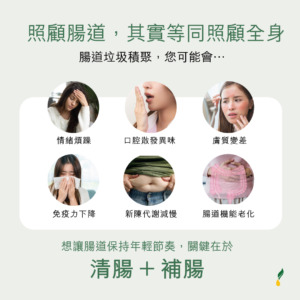 腸道長期積聚垃圾,不但影響消化,更可能加速腸道老化,進而影響膚質、免疫力及新陳代謝。排便不順,正是腸道節奏開始變慢、功能逐漸下降的表現。腸道就像皮膚一樣,不應等到出現明顯問題才開始保養,而是需要日常持續照顧,才能建立穩定的健康狀態。