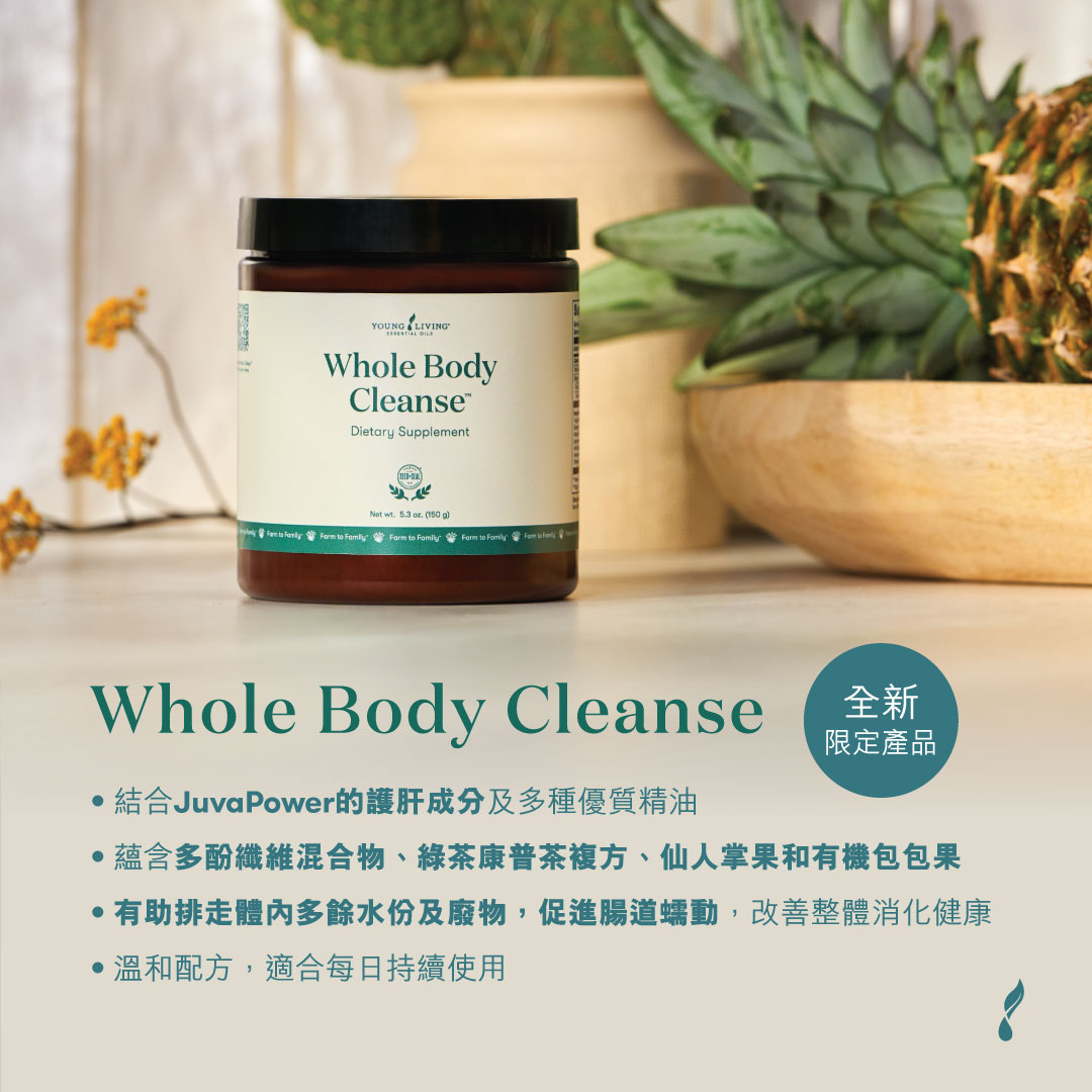 | 全新Whole Body Cleanse以溫和配方支援腸道清潔,幫助排走體內多餘廢物,改善整體消化健康,為身體打好基礎。當腸道變得更乾淨,正是補充優質營養的理想時機。配合寧夏紅及黃金薑黃粉一同飲用,提供強效抗氧支援,幫助調節腸道菌群平衡,為身體帶來全方位營養補給。雙輔雙成,「腸」啟輕盈節奏,逐步喚醒身體活力與自然光采! | ![]() |
