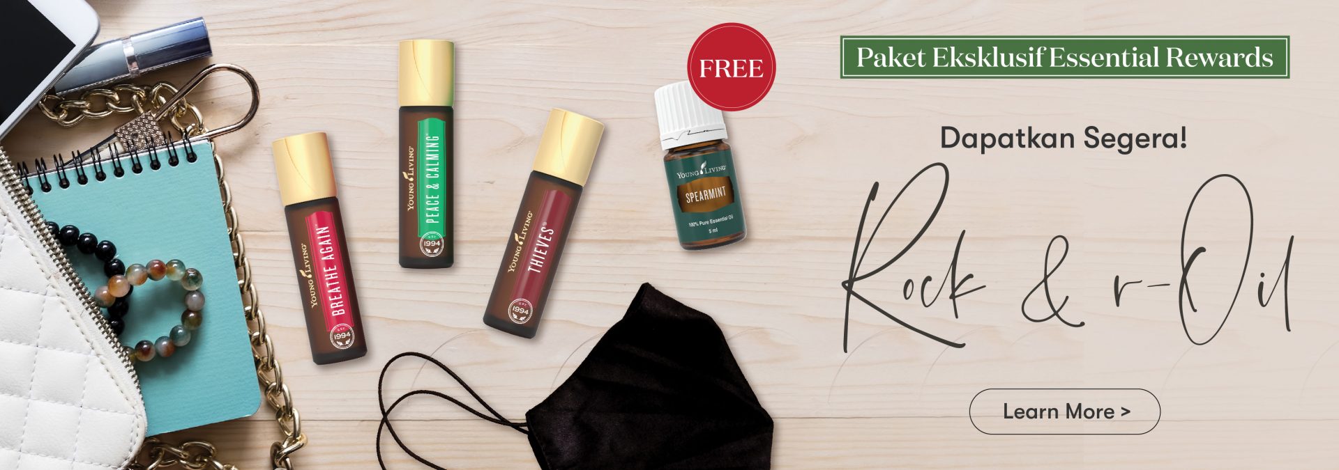 Setiap pembelian Paket Eksklusif Essential Rewards Rock & r-Oil, Anda akan mendapatkan essential oil Spearmint 5ml secara gratis!