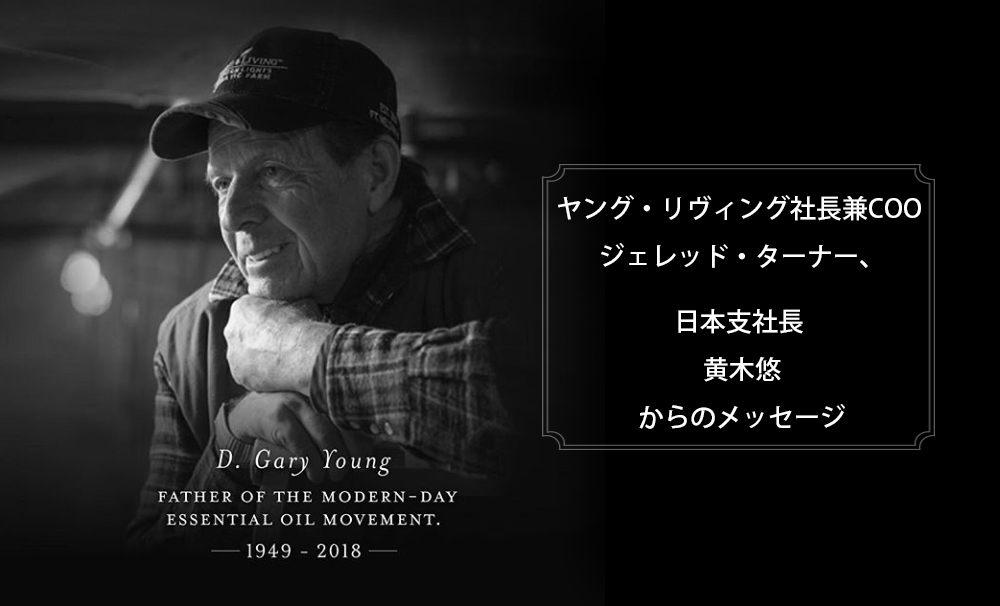 彼が逝ってしまったことは私たちヤング・リヴィングにとって、辛く悲嘆に暮れる想いです。私たちは、エッセンシャルオイル業界の象徴的なパイオニアであり世界中の人々に恩恵をもたらしてくれた、この偉大なゲリーによって支えられてきました。