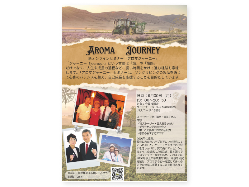 オンラインセミナー「アロマジャーニー」のご案内です。