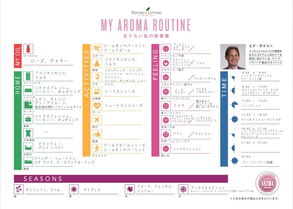 ホームページからもダウンロードできます→ https://www.youngliving.com/ja_JP/company/media/events/AromaRoutine_index