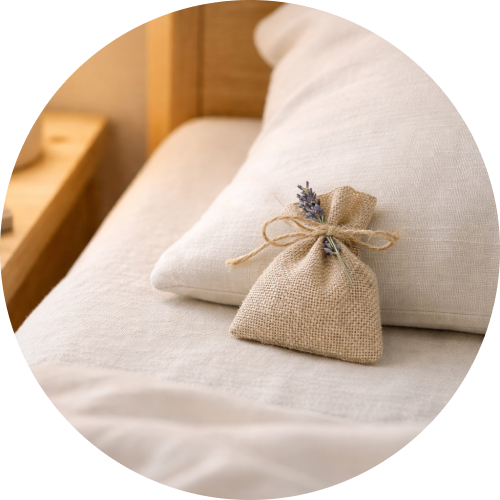 エッセンシャルオイルを垂らしたあと、数秒なじませてから袋に入れると、ムラなく香ります。 - 袋は通気性のある素材を