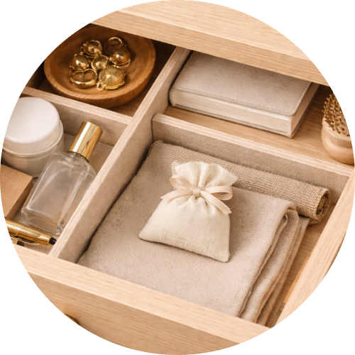 オーガンジーやコットンなど、通気性のある素材を選ぶと、香りが自然に広がります。