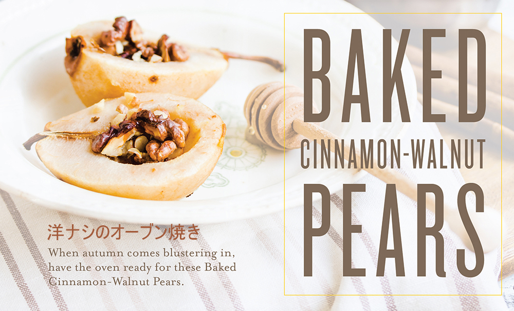 爽やかな風が秋の訪れを感じさせる今日この頃。 季節のフルーツ、洋ナシを使った贅沢デザートにチャレンジしてみては^^♪ シナモンの優雅な風味とクルミの歯ごたえ、自然な甘みのハチミツに相性抜群の洋ナシは、 オーブンに入れることで一層その美味しさ増します。 温かいデザートを口へ運ぶたびに、あなたをラグジュアリーな空間へと誘ってくれることでしょう。