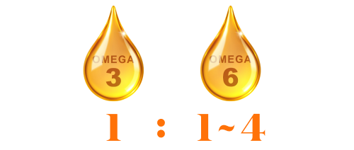オメガ6脂肪酸は摂りすぎると炎症を促進しやすいため、理想的なそれぞれの脂肪酸の比率は オメガ3:オメガ6 = 1:1〜4 と言われています。