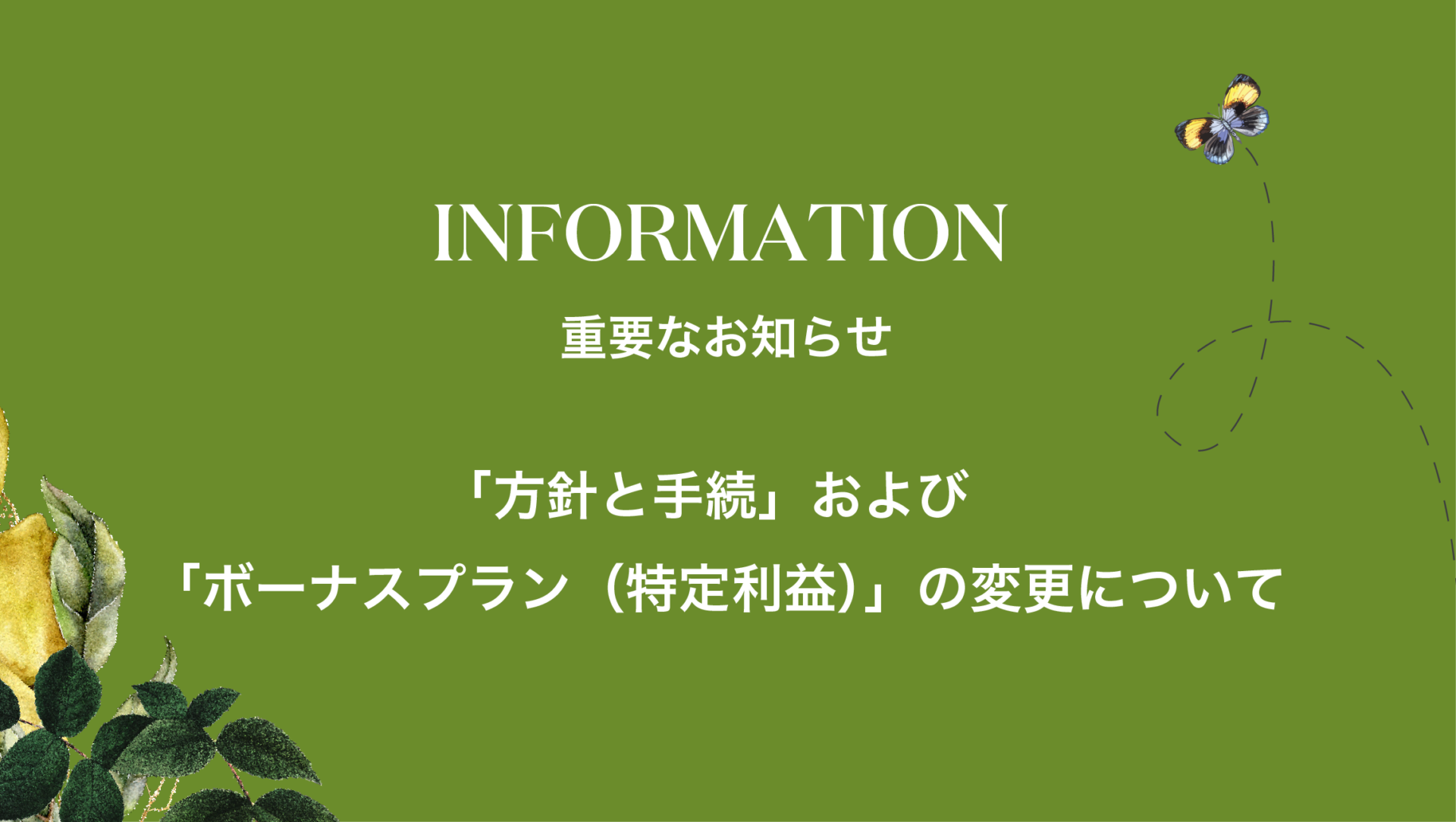 新しい「方針と手続」は、2025年1月19日 より発効、新しい「ボーナスプラン(特定利益)」は、2025年4月1日より発効となります。