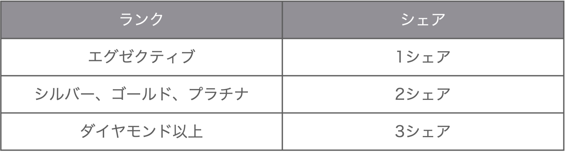 - エグゼクティブとシルバーのブランドパートナーは、これまでより多くのシェア数が付与されることにより、モチベーションの向上につながります。