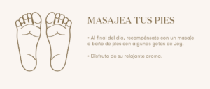 Al final del día, recompénsate con un masaje o baño de pies con algunas gotas de Joy y disfruta de su relajante aroma.