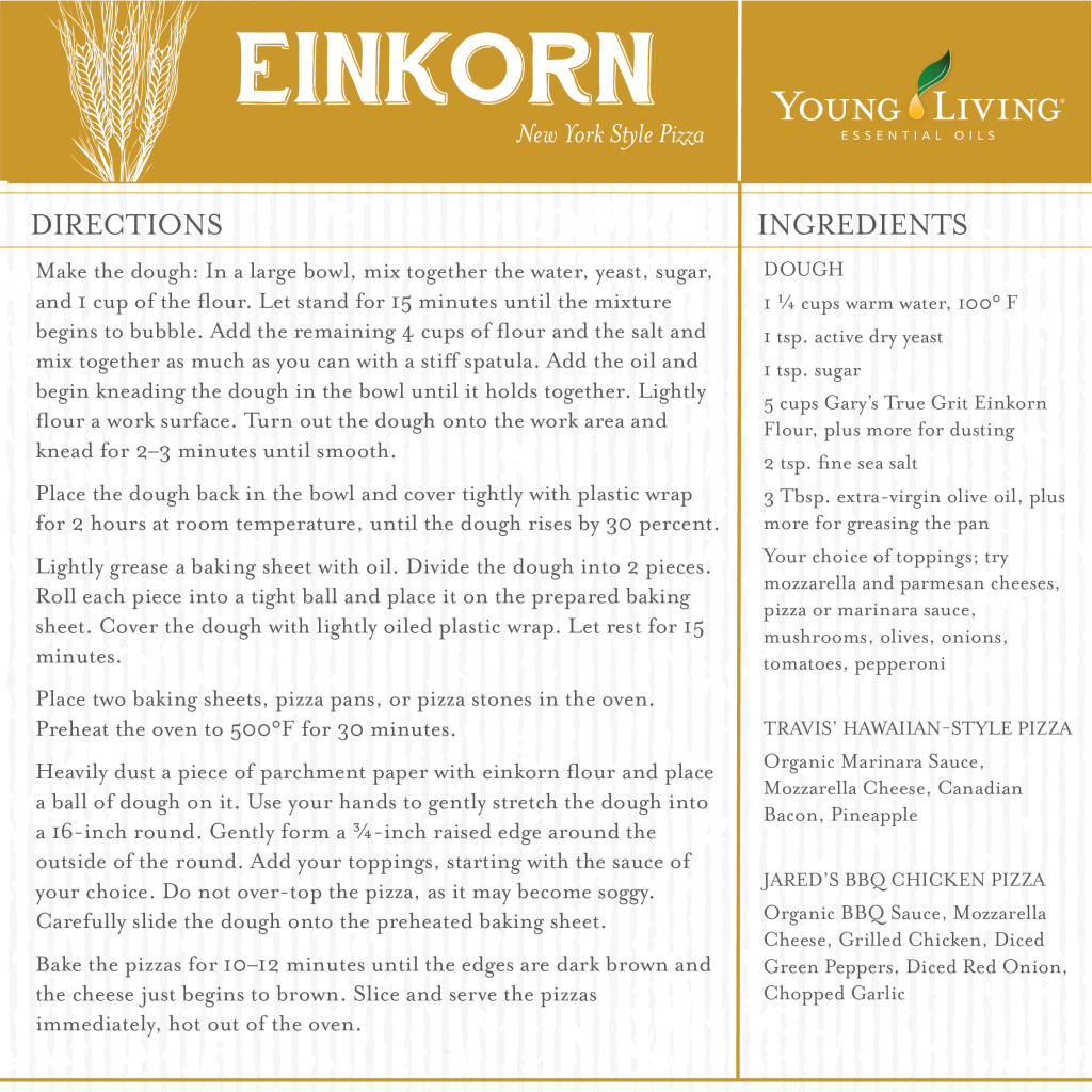 New York Style Einkorn Pizza Crust Young Living2022-07-08T09:41:08-06:00January 13th, 2016|At Home|0 Comments Share This Story, Choose Your Platform! FacebookTwitterPinterestEmail Related Posts See how the new Simplified™ Winter Collection stacks up to your favorite holiday candles and air fresheners. The best smells of winter—simplified If you love grilling, this is your summer to shine with these three delicious essential oil-infused marinade recipes. Savor that summer sizzle: 3 delicious essential oil-infused marinades Sprucing up your laundry routine only takes a few simple drops! Follow this guide to safely add essential oils to your laundry! Elevate your laundry routine with essential oils Leave A Comment Cancel reply Recipe Rating Recipe Rating Comment Δ