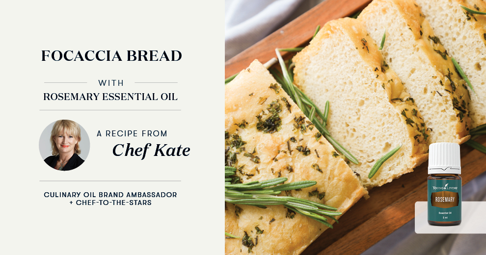 TIP If you don’t have fresh herbs, you can use dried herbs like rosemary and/or thyme and knead them into the dough rather than sprinkling on top as they tend to burn. Rosemary Essential Oil is one of the stronger ones so just use a drop to add a delicious burst of flavour.