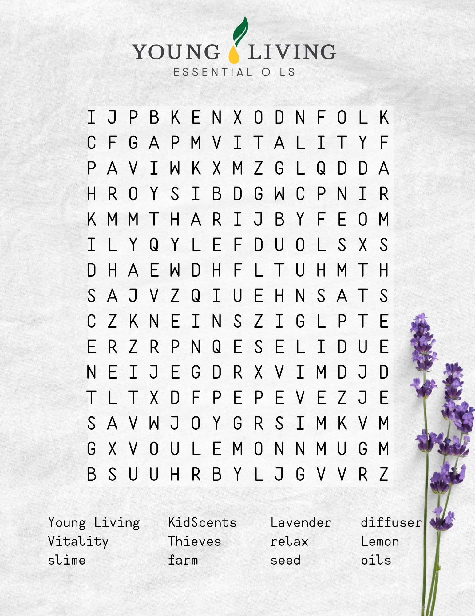 Your older kids will enjoy testing their vocabulary and spelling skills with this Young Living word search.