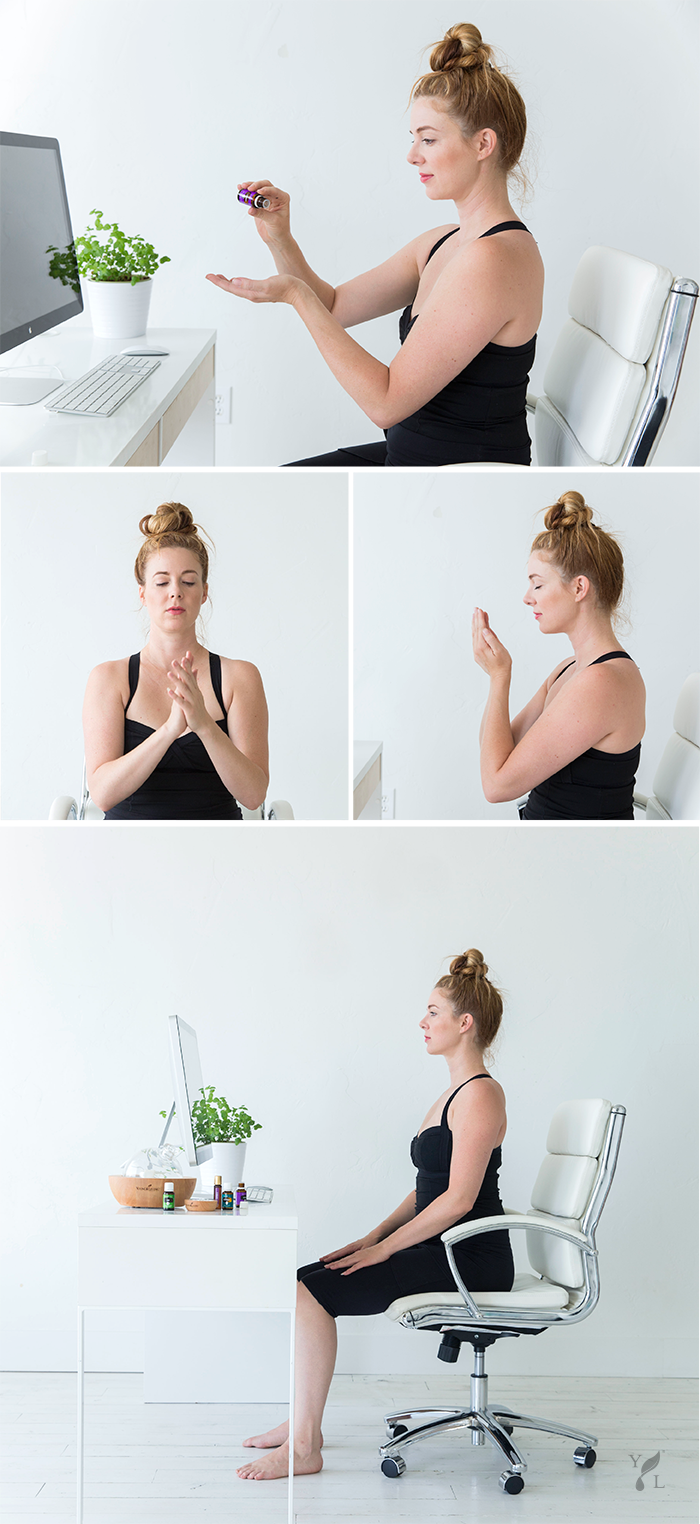 Young Living - Sit-Down, Sweat-Free Aroma Yoga with Essential OilsAt the end of this practice, bring your hands to the center of your lap, with the back of your left hand gently resting in your right palm. Close your eyes and notice your physical sensations and feelings.