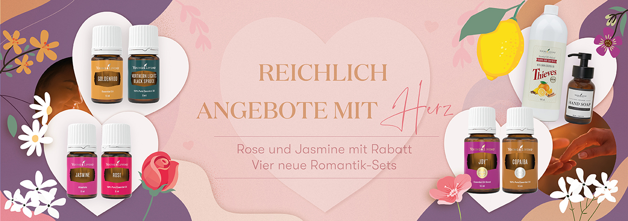 Wir hier bei Young Living LIEBEN den Februar als den Monat der Liebe einfach. Um Dir zu helfen, diese romantische Zeit des Beisammenseins zu feiern, stellen wir einige fantastische „ölige“ Angebote vor, die Dir ganz sicher gefallen werden.