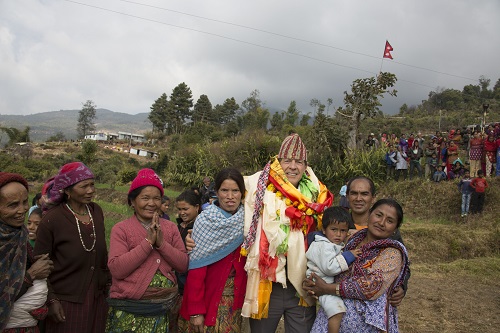 We first went to Yarsa in the 6th district, the epicenter of the quake, a 7-hour drive from Katmandu, since the road to their village was still drivable. However, when we arrived, I was quite disturbed to learn that still, nine months later, no one had been to investigate the fate of 280 people and the loss of all their homes. We were the first to bring help with a semi load of blankets, coats, sweaters, hats, and pajamas. |