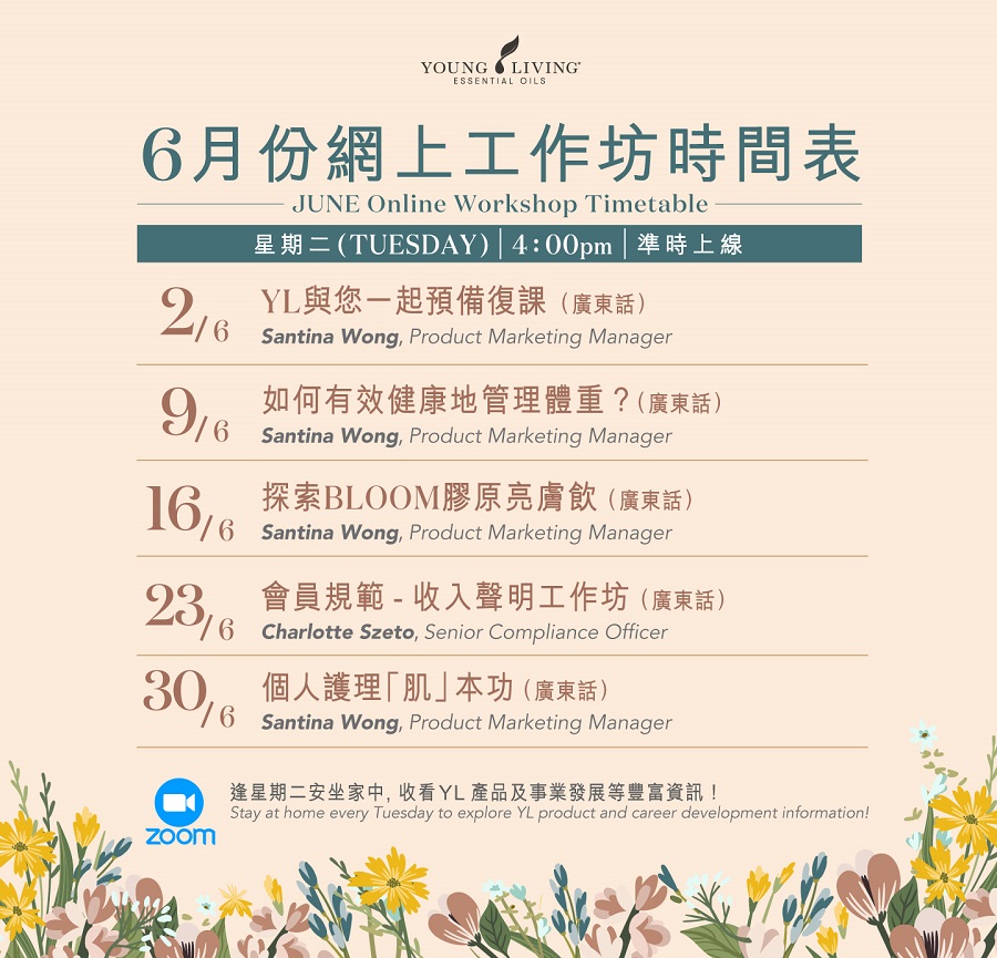In this workshop, we will share the latest income claims guidelines with you by the US Conduct Success Team. We will explain what income claims are and how to properly share the success you get from Young Living's business. Especially if you are a leader, please be sure to participate in our income claims workshop, which will be held at 4 o'clock on June 23, 2020! If you want to expand the Young Living team organization or have any questions about membership specifications, don't miss the June workshop!
