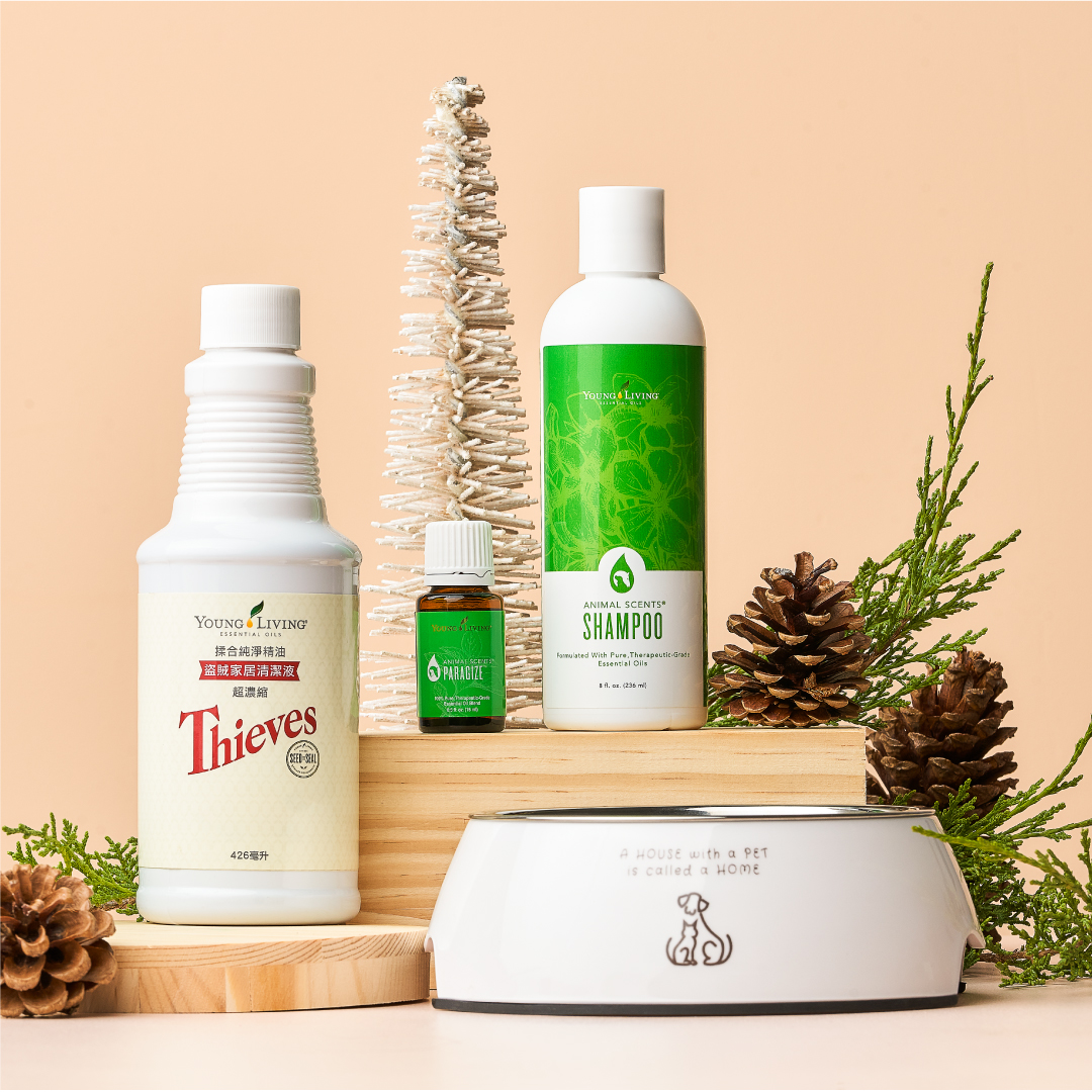 Animal Scents® Shampoouses a gentle, plant-based formula that cleanses and eliminates odors. Also Animal Scents® ParaGize contains natural pure essential oils of ginger, fennel and peppermint, which creates a quiet, comfortable scents after diffusion and supports your pet’s natural immune system. Use it with Thieves Household Cleaner in your home to provide a non-toxic, clean environment for your beloved pets.