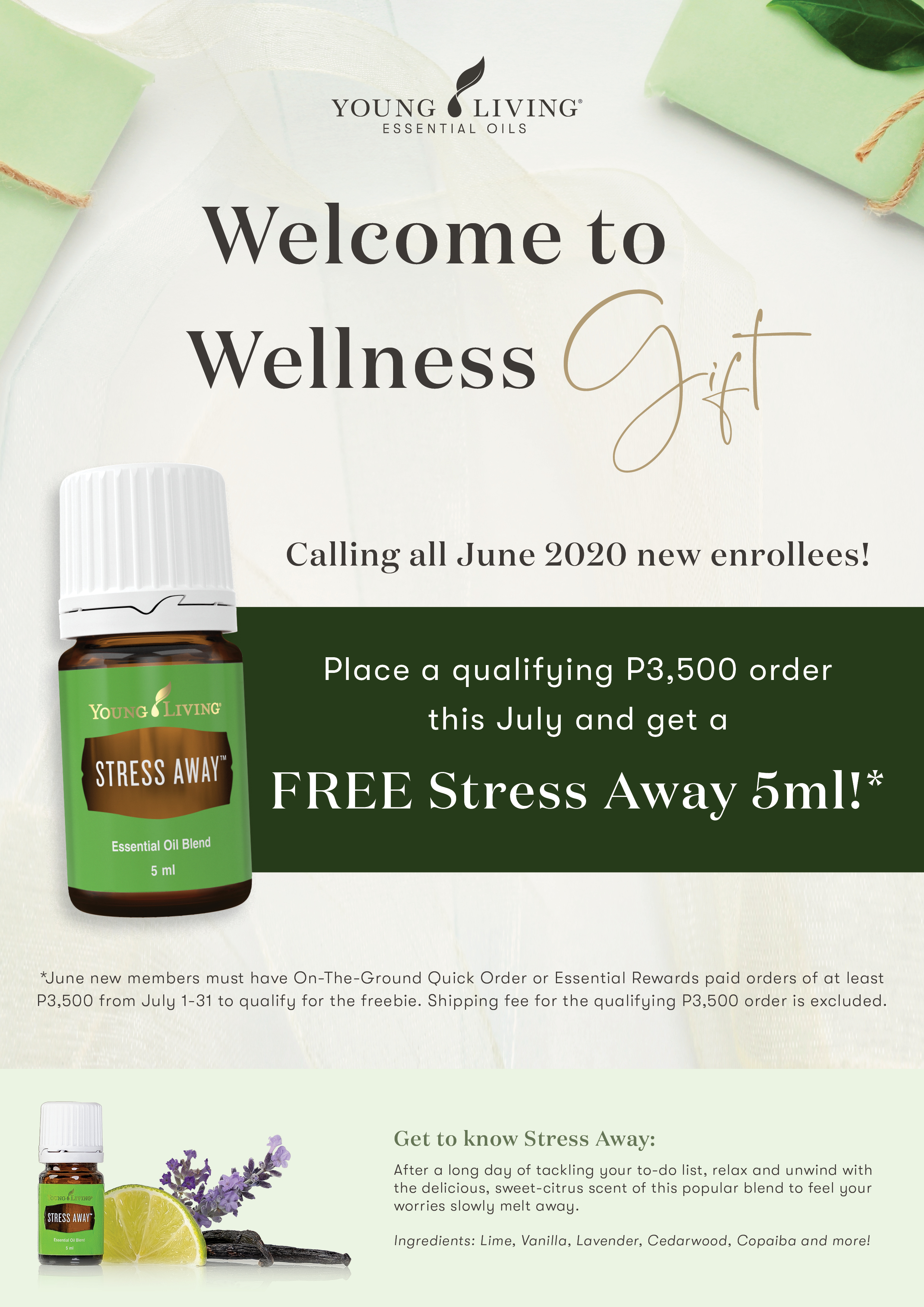 The free Stress Away 5ml will be shipped together with the qualified member’s next order starting August 1, 2020.