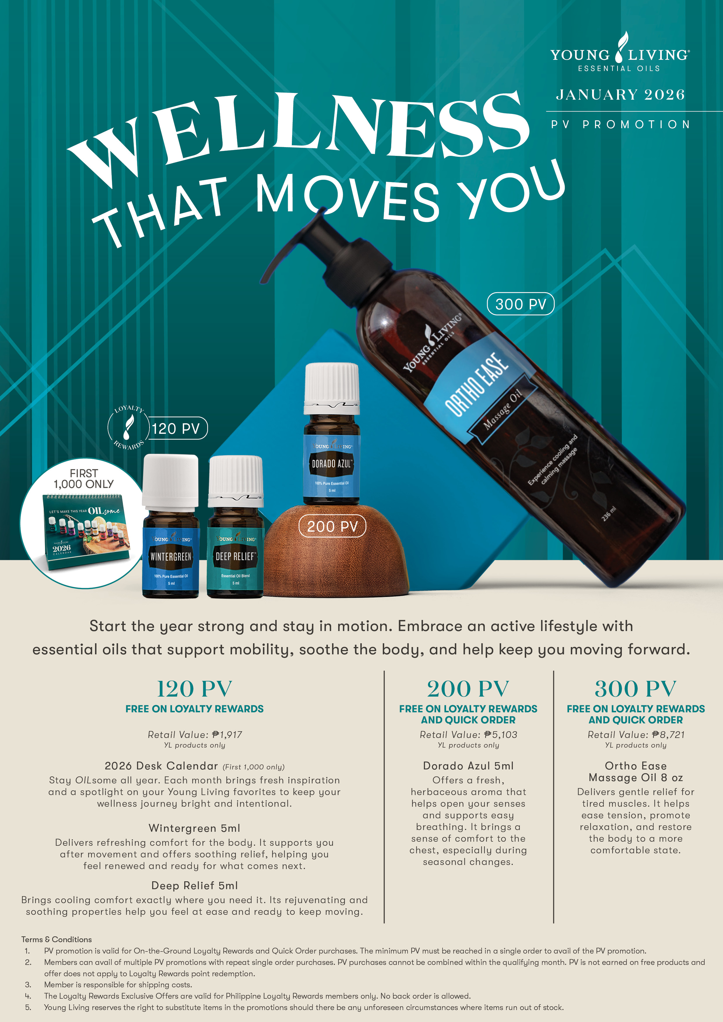 ● At 300 PV: Ortho Ease Massage Oil 8oz, 2026 Desk Calendar (FIRST 1,000 ONLY!), Wintergreen 5ml, and Deep Relief 5ml