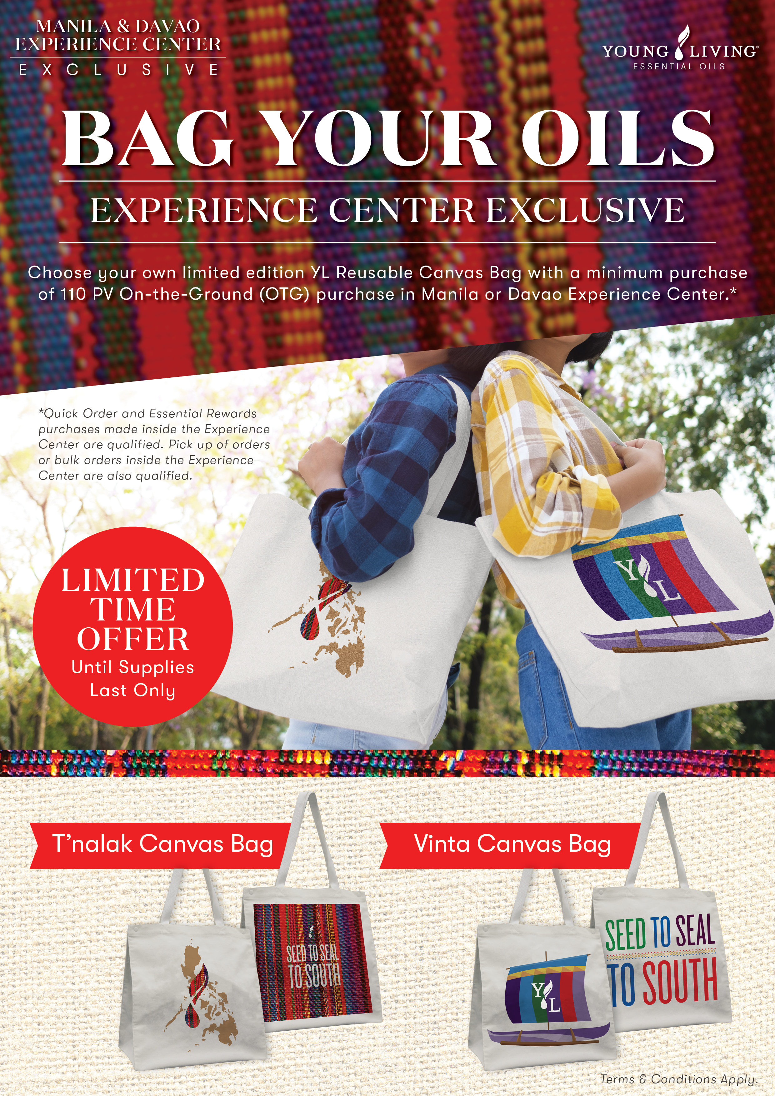 All enrollment sets picked up from any of the ECs are entitled to receive a free (regular design) Reusable Canvas Bag. If you wish to avail either the special limited edition T’nalak or Vinta design, you have to reach a minimum OTG purchase of 110 PV. Note that you will only receive 1 free canvas bag in this case.