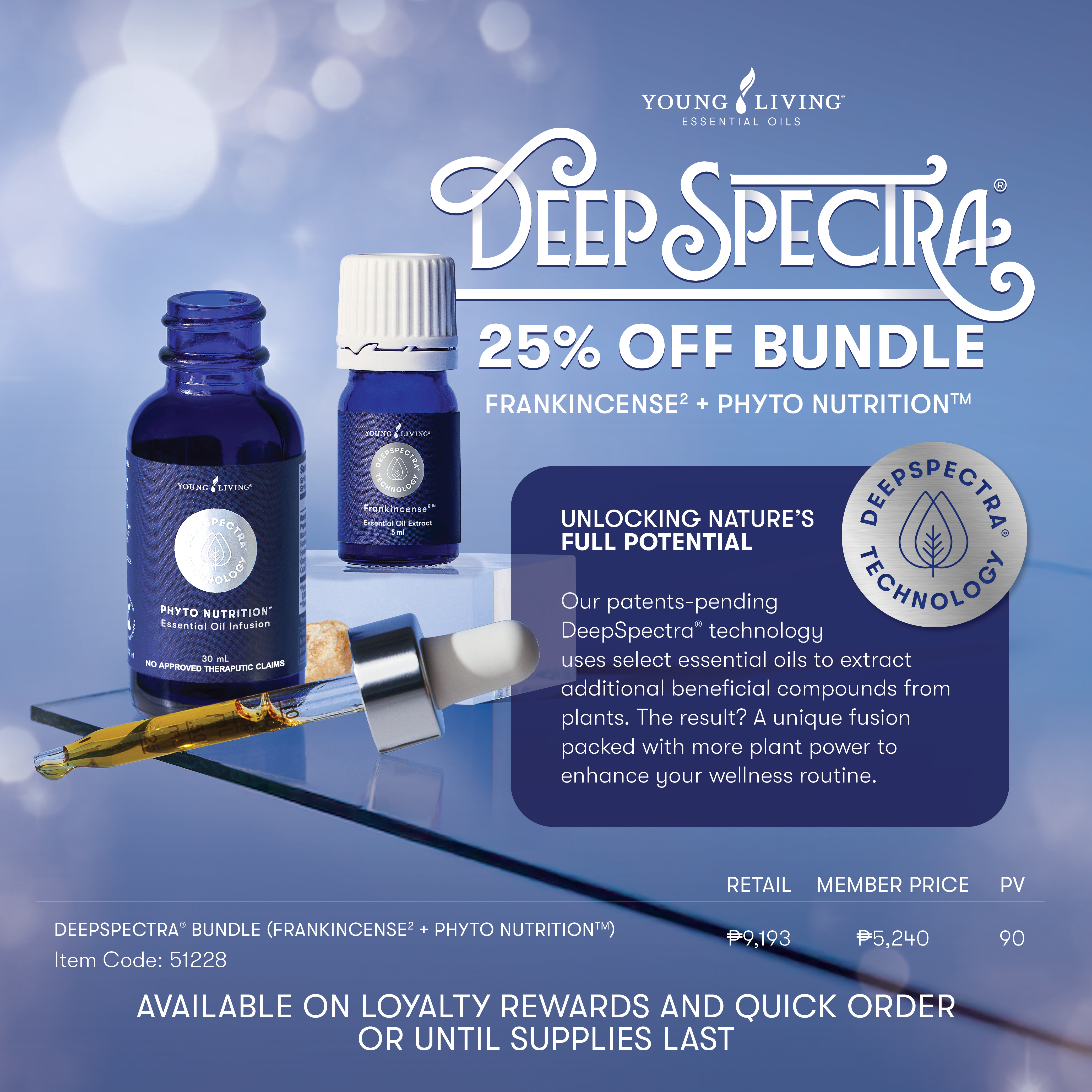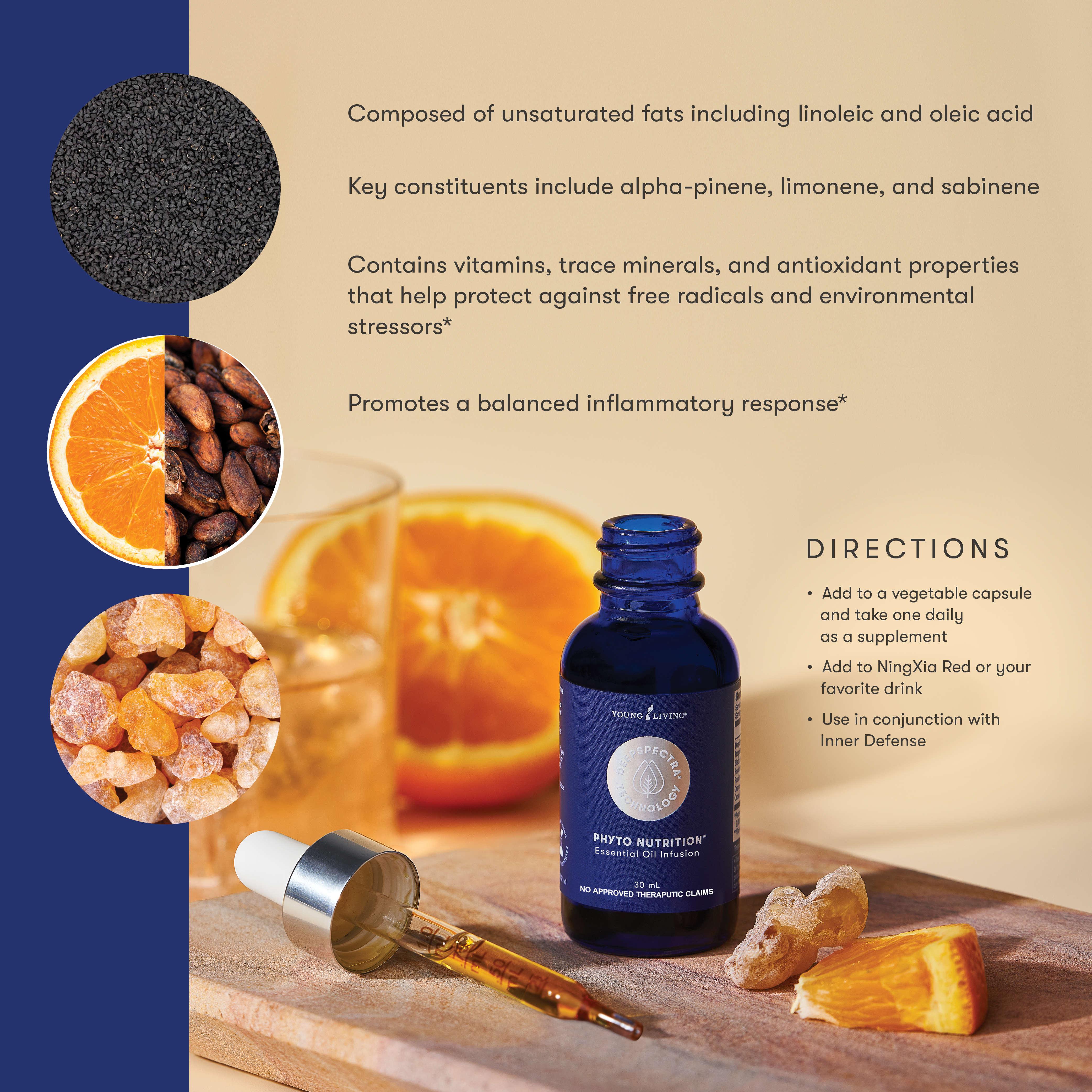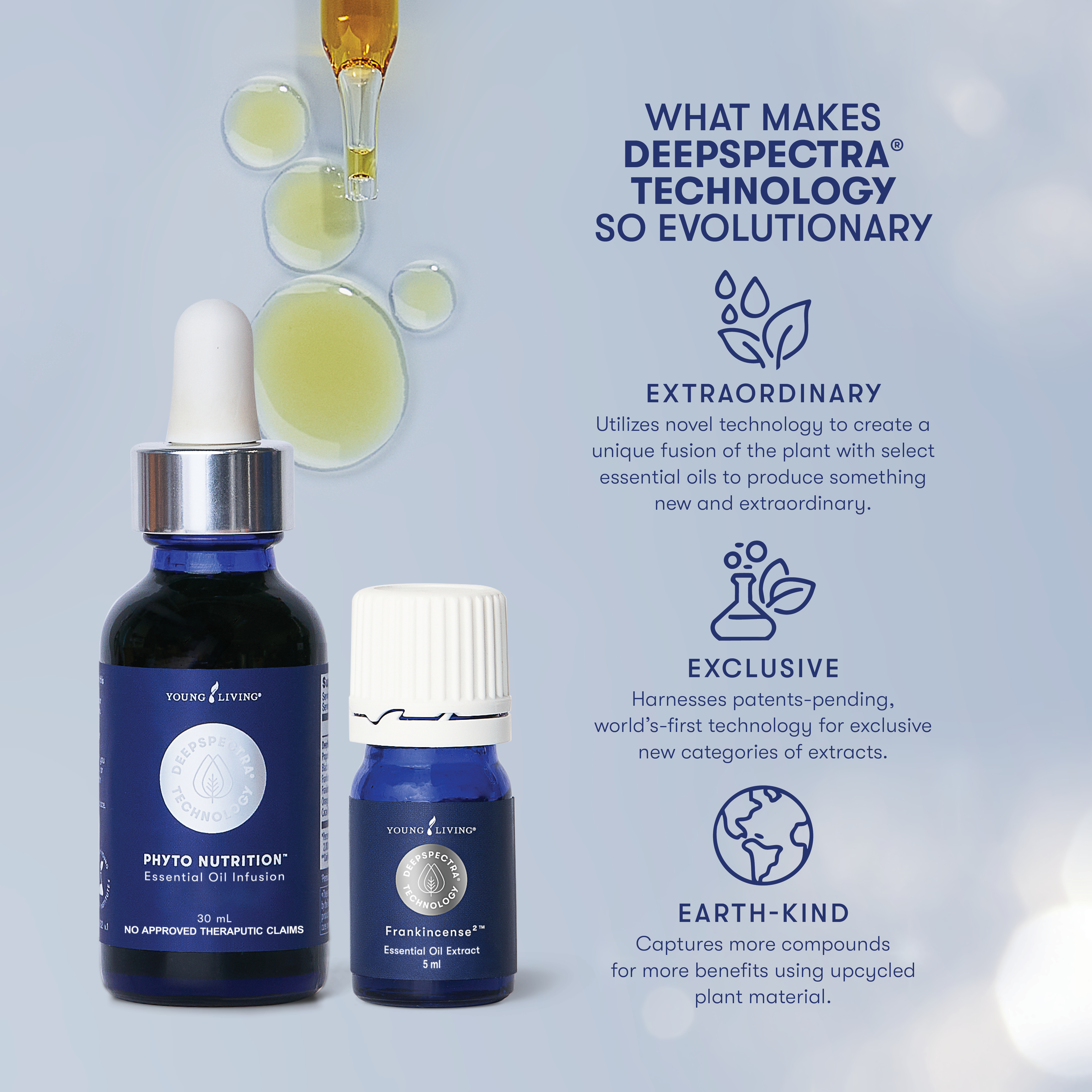 Our patents-pending DeepSpectra technology uses select essential oils to extract additional beneficial compounds from plants. The result? A unique fusion packed with more plant power to enhance your wellness routine.