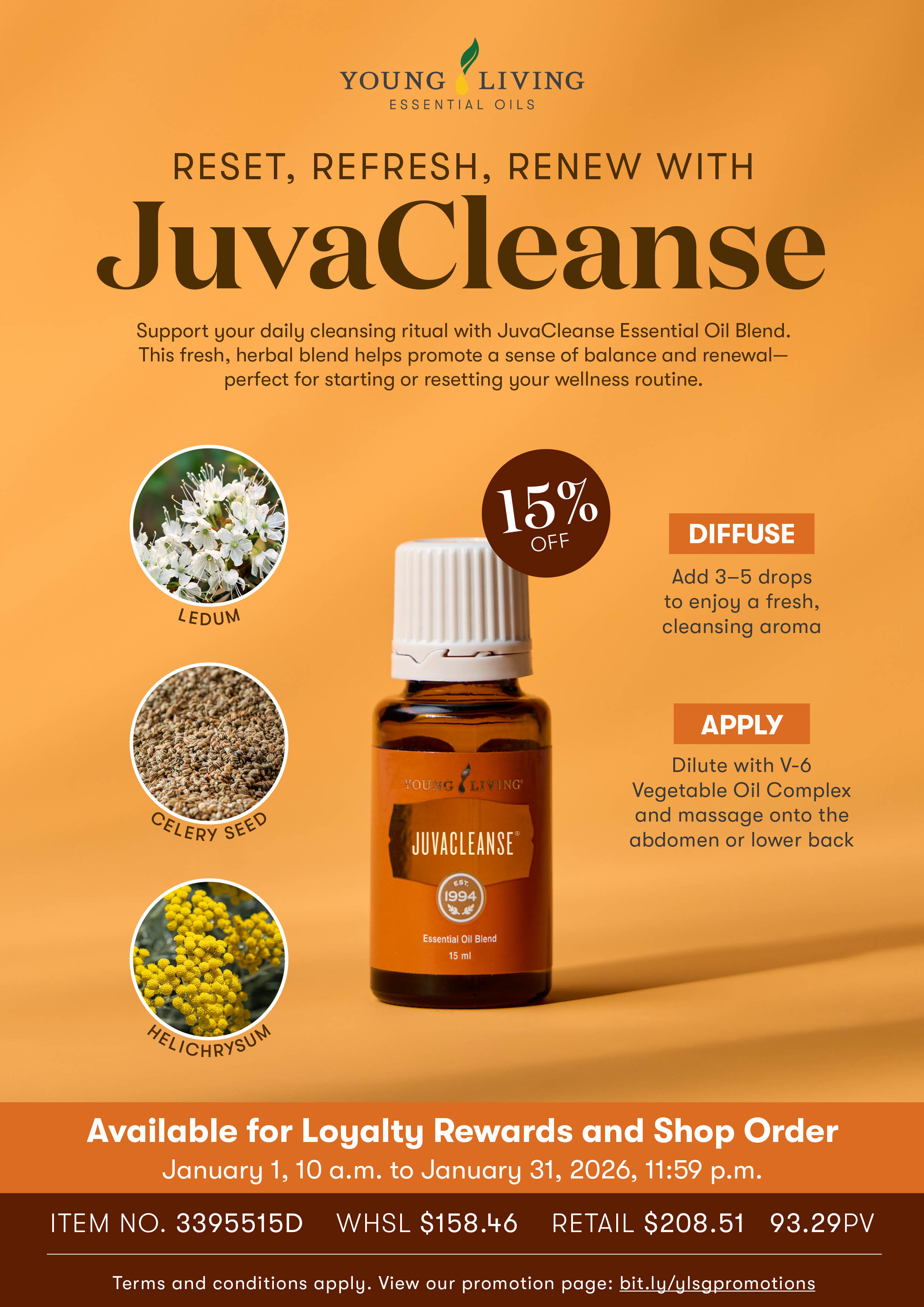 Support your daily cleansing ritual with JuvaCleanse Essential Oil Blend. This fresh, herbal blend helps promote a sense of balance and renewal—